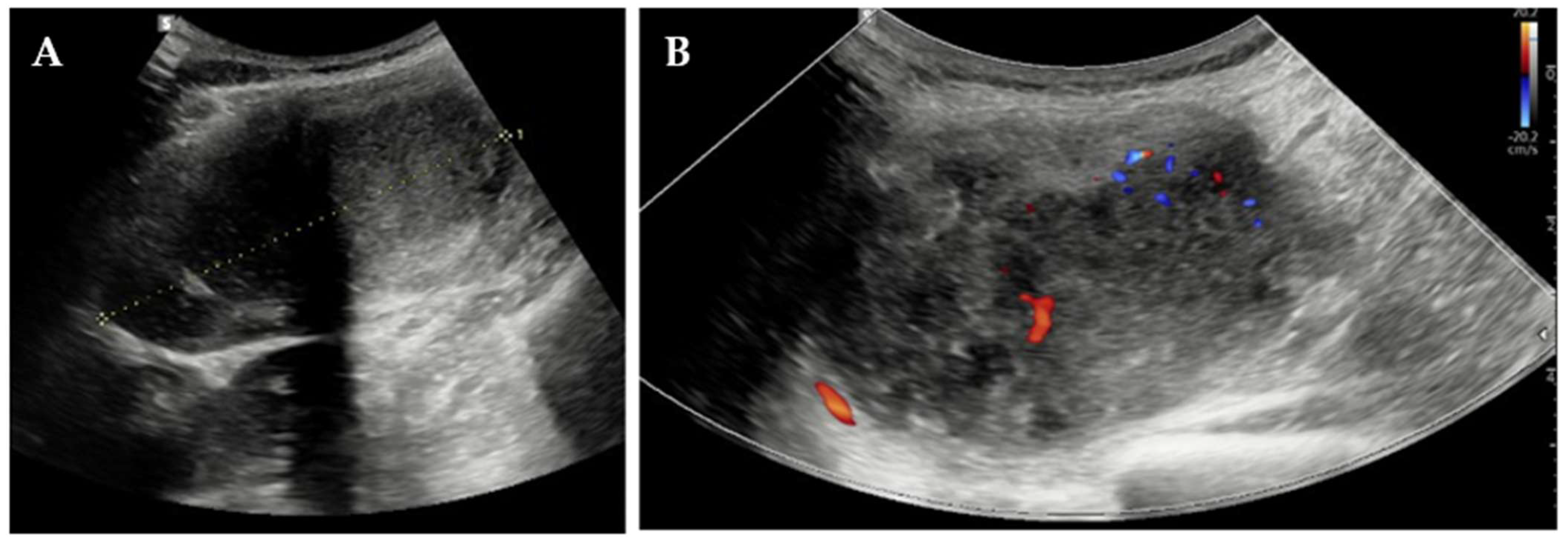 - Zubor, P.; Henriksen, C.M.; Økstad, M.E.; Cerskuviene, E.; Visnovsky, J.; Kajo, K.; Valkov, A.; Lind, K.O. Desmoid Fibromatosis of the Anterior Abdominal Wall in Pregnancy: A Case Report and Review of the Literature. Diseases 2024, 12, 27. [Google Scholar] [CrossRef]