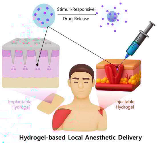 - Jeong, J.-O.; Kim, M.; Kim, S.; Lee, K.K.; Choi, H. Advanced Hydrogel Systems for Local Anesthetic Delivery: Toward Prolonged and Targeted Pain Relief. Gels 2025, 11, 131. [Google Scholar] [CrossRef]
