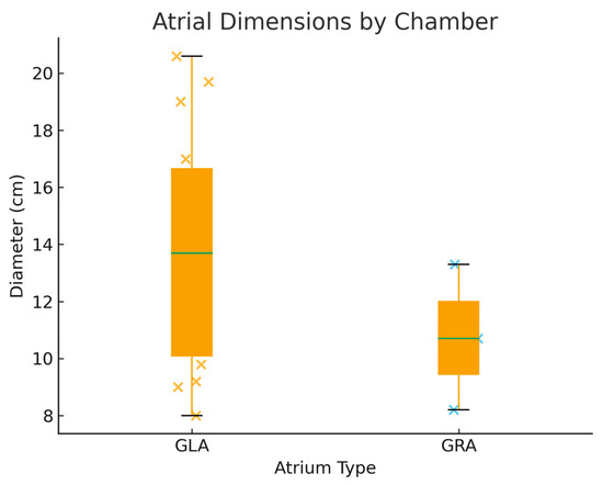 From a therapeutic perspective, consensus remains limited [6,13,15,16]. Some authors advocate for correction of the underlying valvular lesion alone, while others recommend concomitant atrial reduction or aneurysm resection, particularly in patients with compressive symptoms or recurrent embolic events. Recognition of the full spectrum of giant atrial pathology—encompassing GLA, GRA, and atrial appendage aneurysms—is therefore essential to guide timely diagnosis and individualized management.