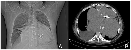 - Grzeskowiak, M.Z.; Ahmed, N. Case of Giant Left Atrium from Congestive Heart Failure. BMJ Case Rep. 2018, 2018, bcr2018226043. [Google Scholar] [CrossRef]