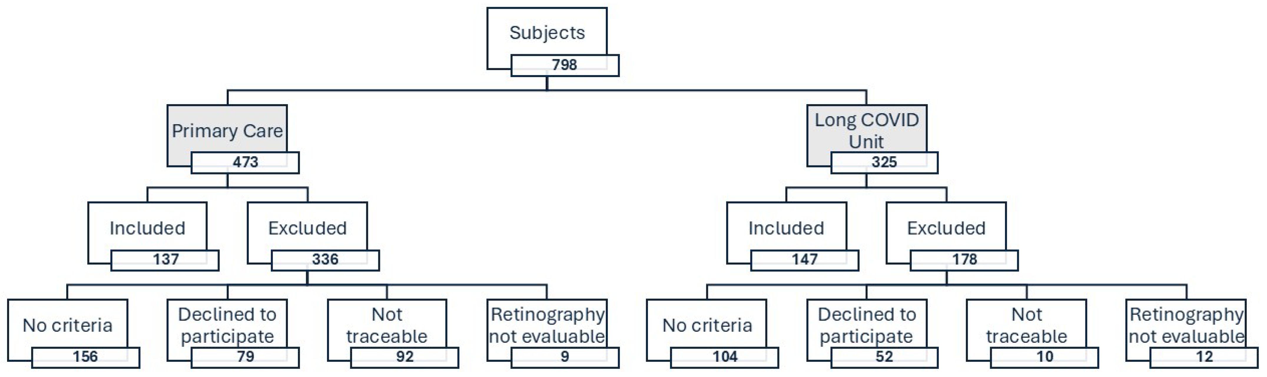 - Kazantzis, D.; Machairoudia, G.; Theodossiadis, G.; Theodossiadis, P.; Chatziralli, I. Retinal microvascular changes in patients recovered from COVID-19 compared to healthy controls: A meta-analysis. Photodiagn. Photodyn Ther. 2023, 42, 103556. [Google Scholar] [CrossRef] [PubMed]