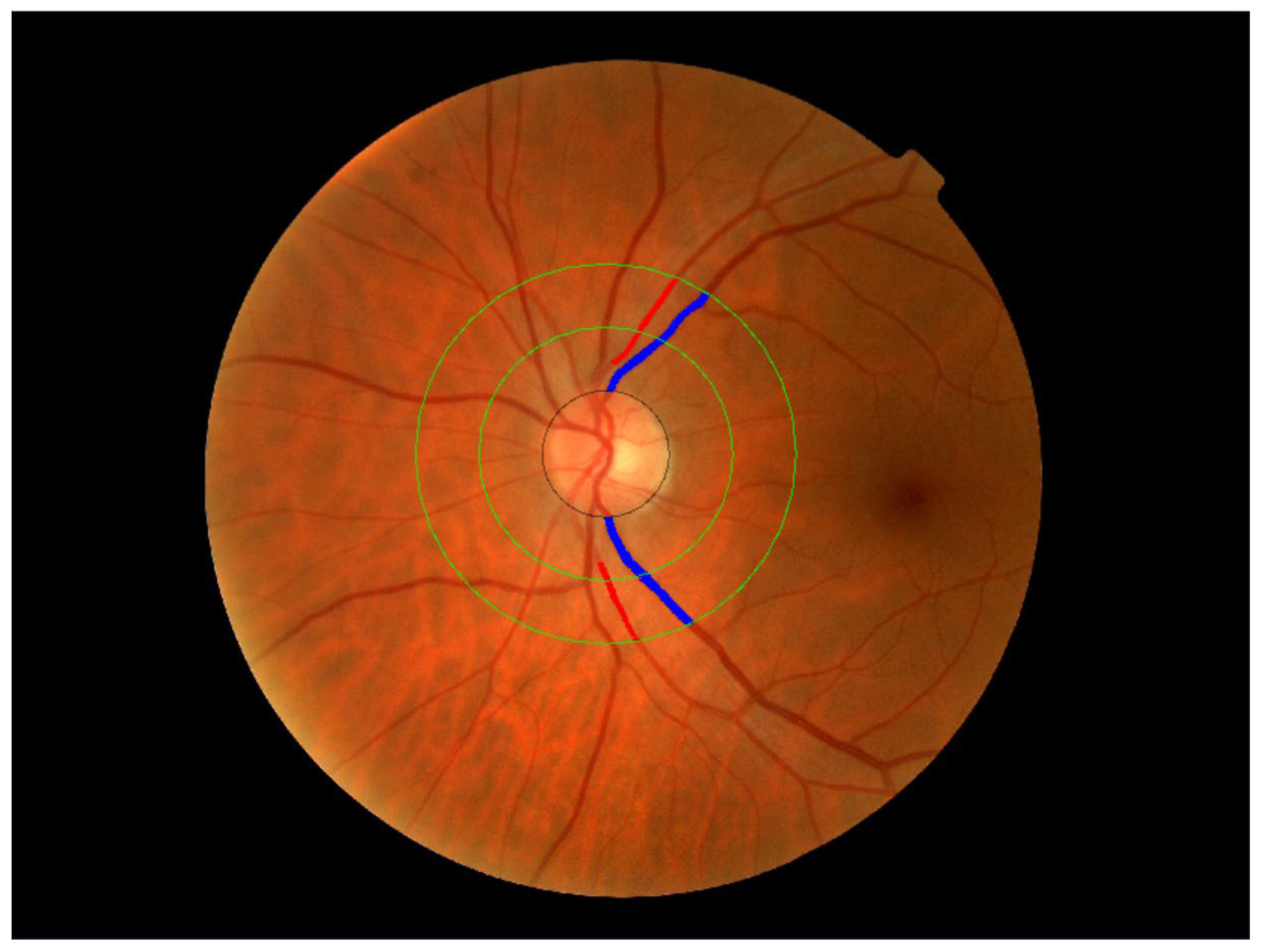 - Wong, T.Y.; Knudtson, M.D.; Klein, R.; Klein, B.E.K.; Meuer, S.M.; Hubbard, L.D. Computer-Assisted Measurement of Retinal Vessel Diameters in the Beaver Dam Eye Study: Methodology, Correlation between Eyes, and Effect of Refractive Errors. Ophthalmology 2004, 111, 1183–1190. [Google Scholar] [CrossRef]