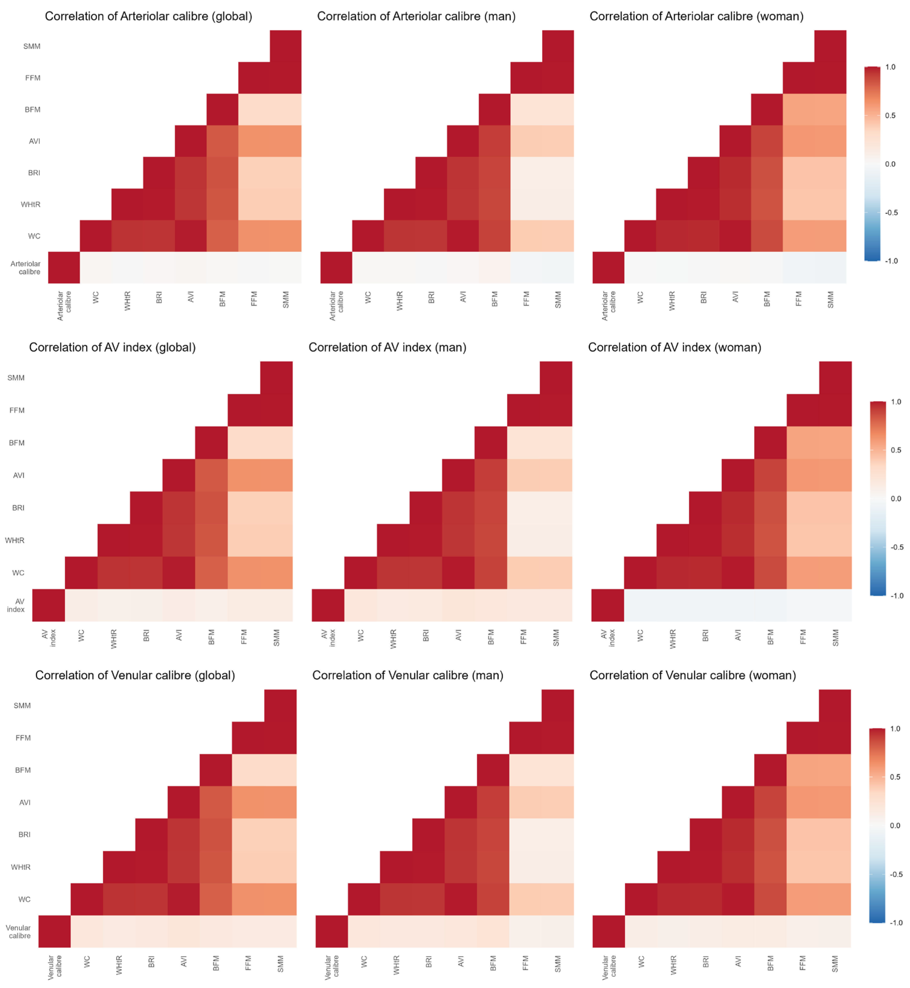 3.2. Association Between Anthropometric Values and Retinal Blood Vessels
