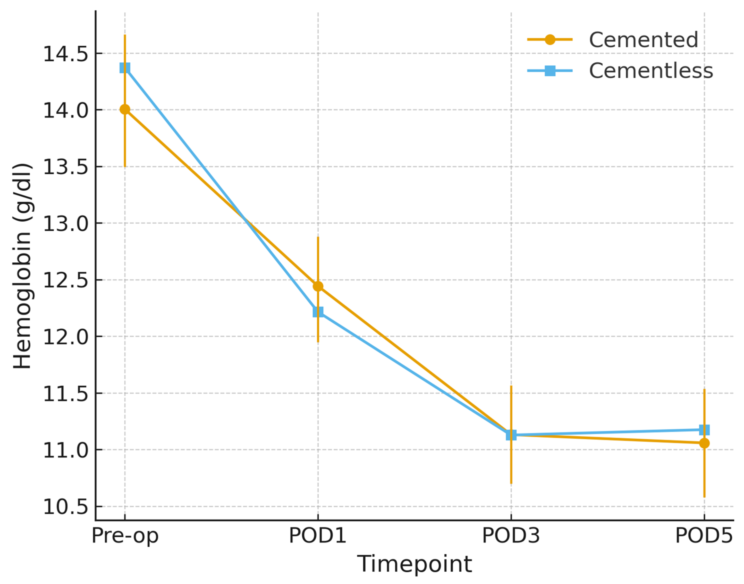 - Kim, Y.D.; Cho, N.; Sohn, S.; Park, S.; You, H.Y.; Koh, I.J. Comparison of Postoperative Blood Loss in Cementless and Cemented Total Knee Arthroplasty: A Systematic Review. Arch. Orthop. Trauma Surg. 2024, 145, 18. [Google Scholar] [CrossRef]