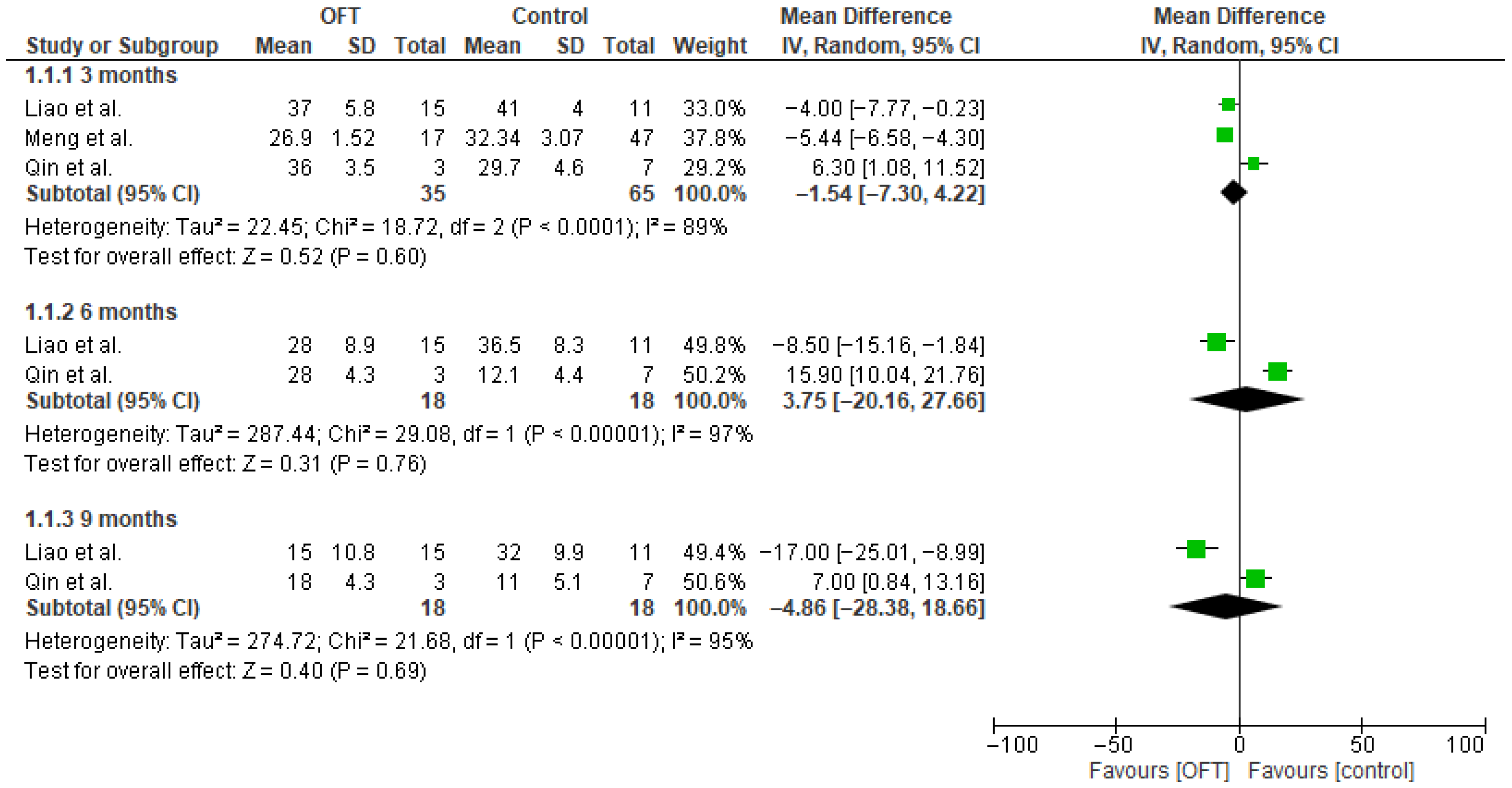 | Meng et al. [10] | 2021 | Retrospective | China | single | 2018–2020 | OFT | 17 | 10 | 20.58 (3.7) | 49.82 (14.74) | 3 |