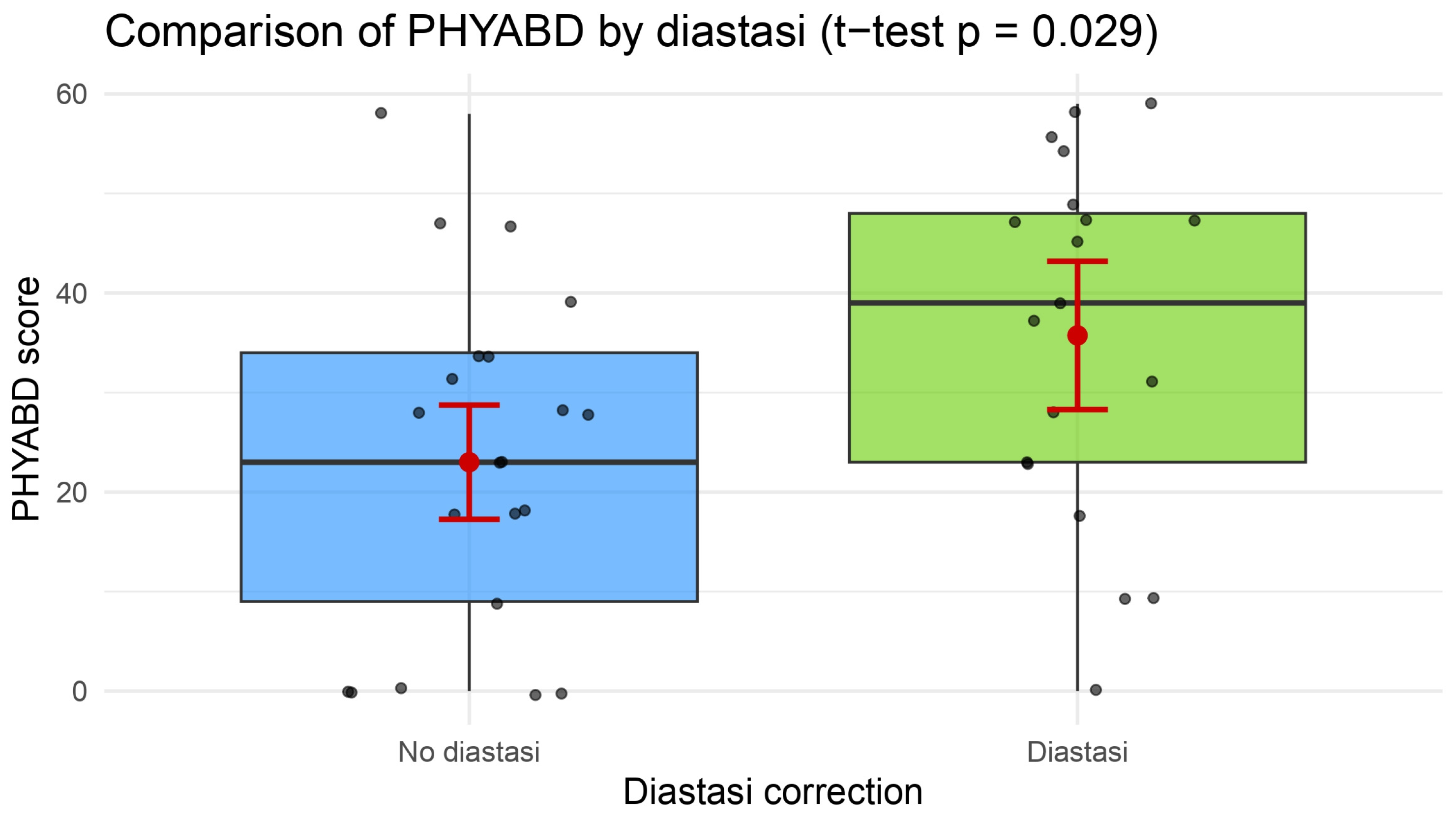 | Diastasis plication | 0.03121 | 0.0006948 0.8388511 | 0.0921519 * |