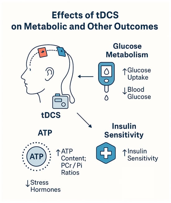 - Wardzinski, E.K.; Friedrichsen, L.; Dannenberger, S.; Kistenmacher, A.; Melchert, U.H.; Jauch-Chara, K.; Oltmanns, K.M. Double transcranial direct current stimulation of the brain increases cerebral energy levels and systemic glucose tolerance in men. J. Neuroendocrinol. 2019, 31, e12688. [Google Scholar] [CrossRef]