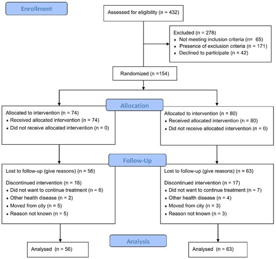 - Moher, D.; Hopewell, S.; Schulz, K.F.; Montori, V.; Gøtzsche, P.C.; Devereaux, P.J.; Elbourne, D.; Egger, M.; Altman, D.G. CONSORT 2010 Explanation and Elaboration: Updated Guidelines for Reporting Parallel Group Randomised Trials. BMJ 2010, 340, c869. [Google Scholar] [CrossRef]