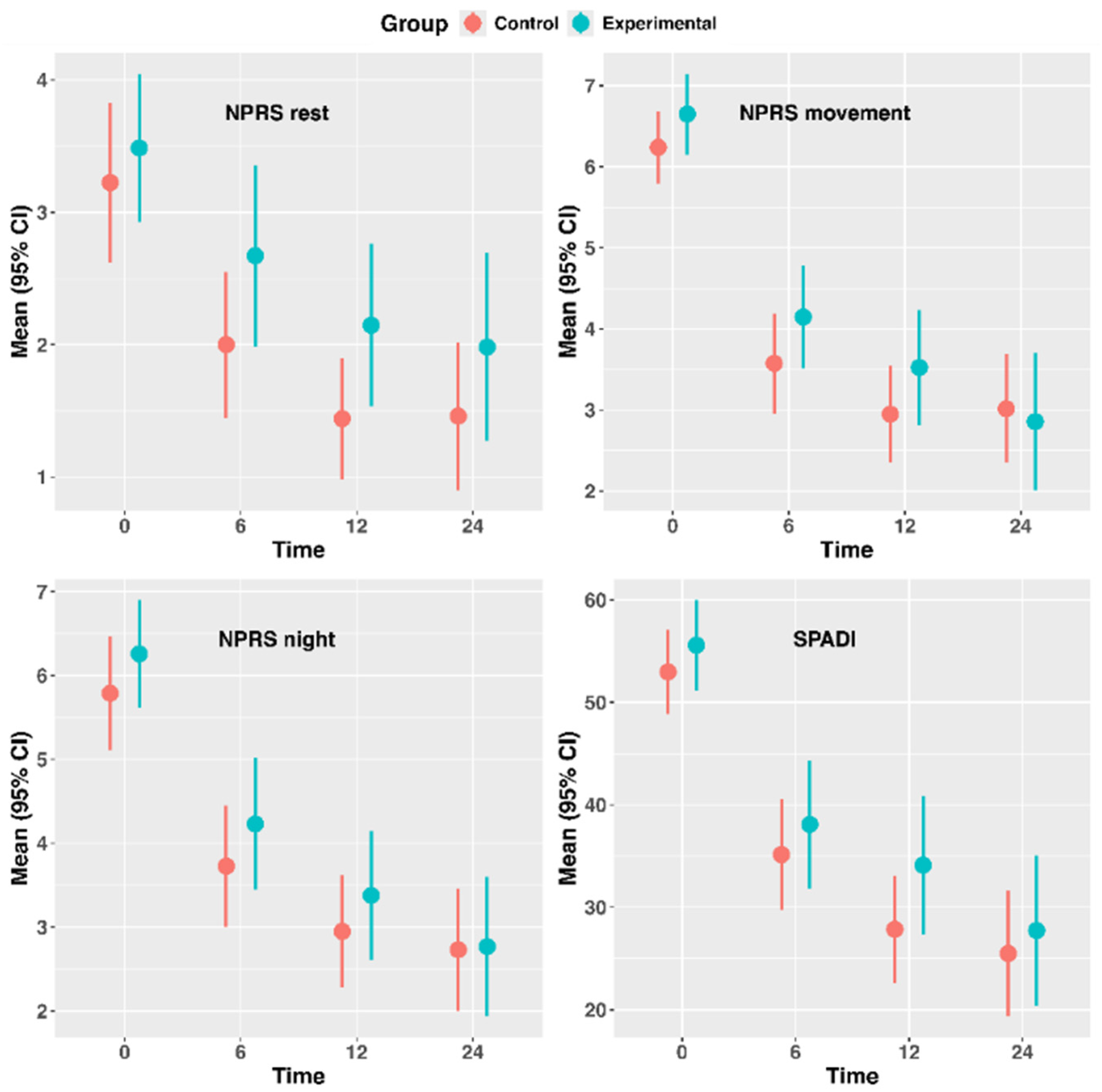 3.1. Between-Group Differences in Shoulder Pain and Disability Outcomes