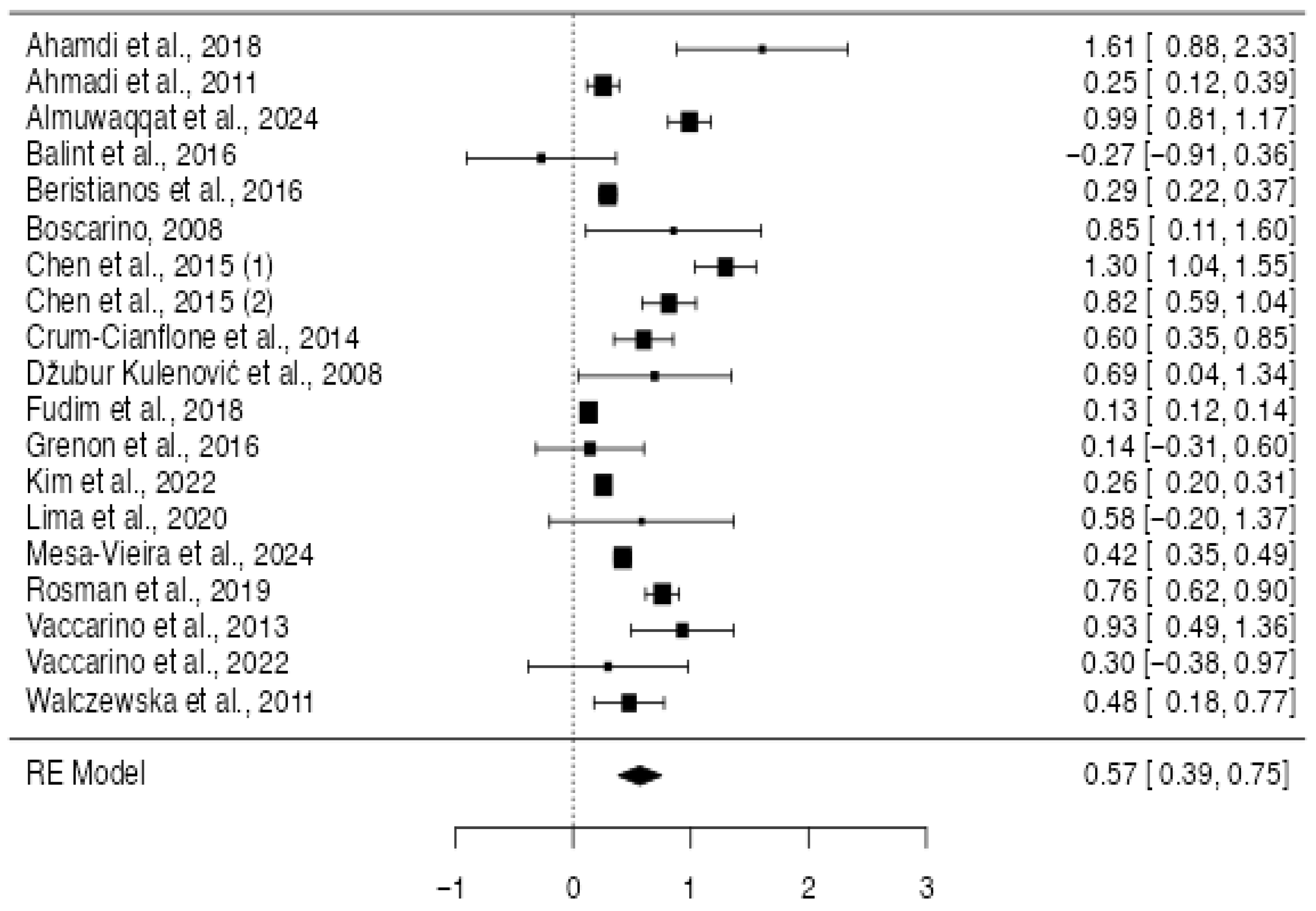| Mesa-Vieira et al., 2024 [39] | USA | 1,009,113 | General Population | 40 | 38.6 | ICD-10 | MACE | Higher incidence of MACE in PTSD condition |