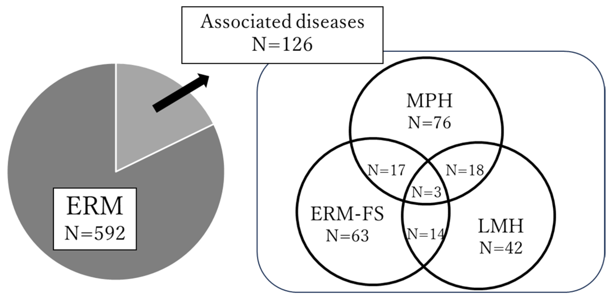 - Sasaki, T.; Matsui, Y.; Kato, K.; Chujo, S.; Maeda, S.; Ozaki, A.; Ikesugi, K.; Sugimoto, M.; Matsubara, H.; Kondo, M. Comparisons of Clinical Characteristics and Surgical Outcomes of Epiretinal Membrane Foveoschisis to Typical Epiretinal Membrane. J. Clin. Med. 2023, 12, 4009. [Google Scholar] [CrossRef] [PubMed] [PubMed Central]