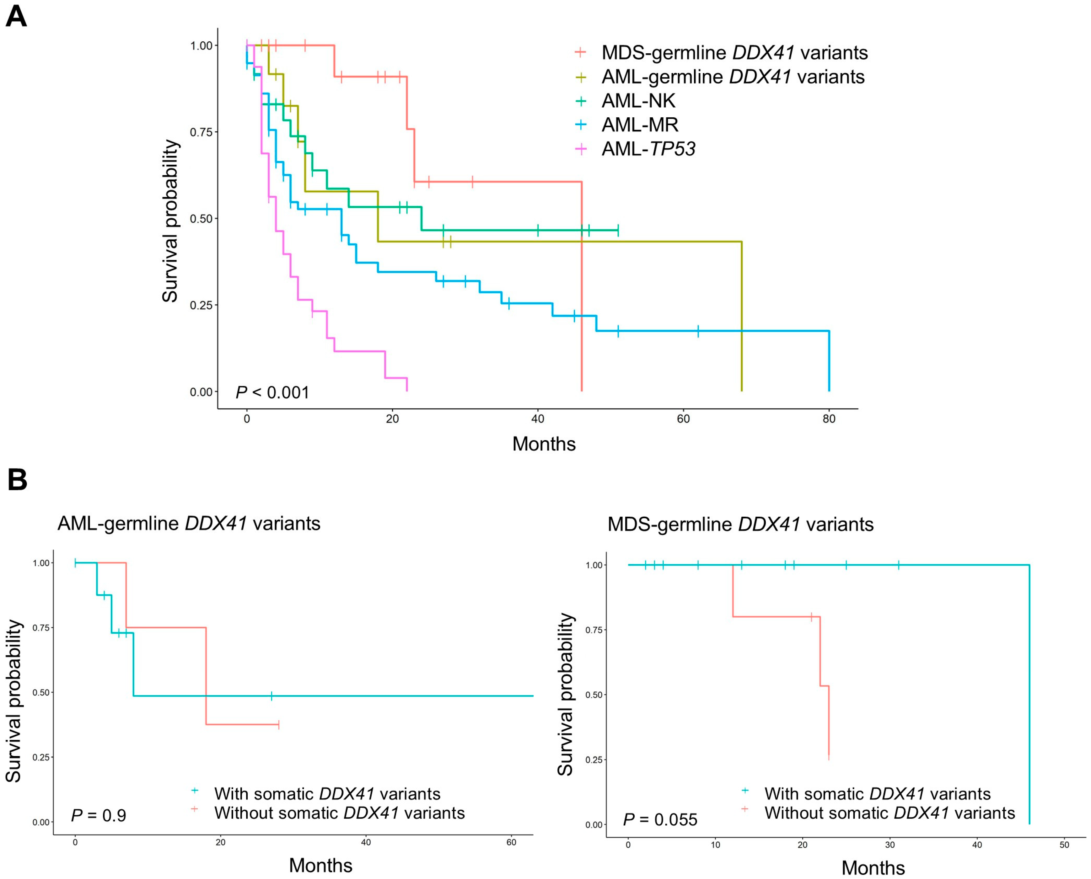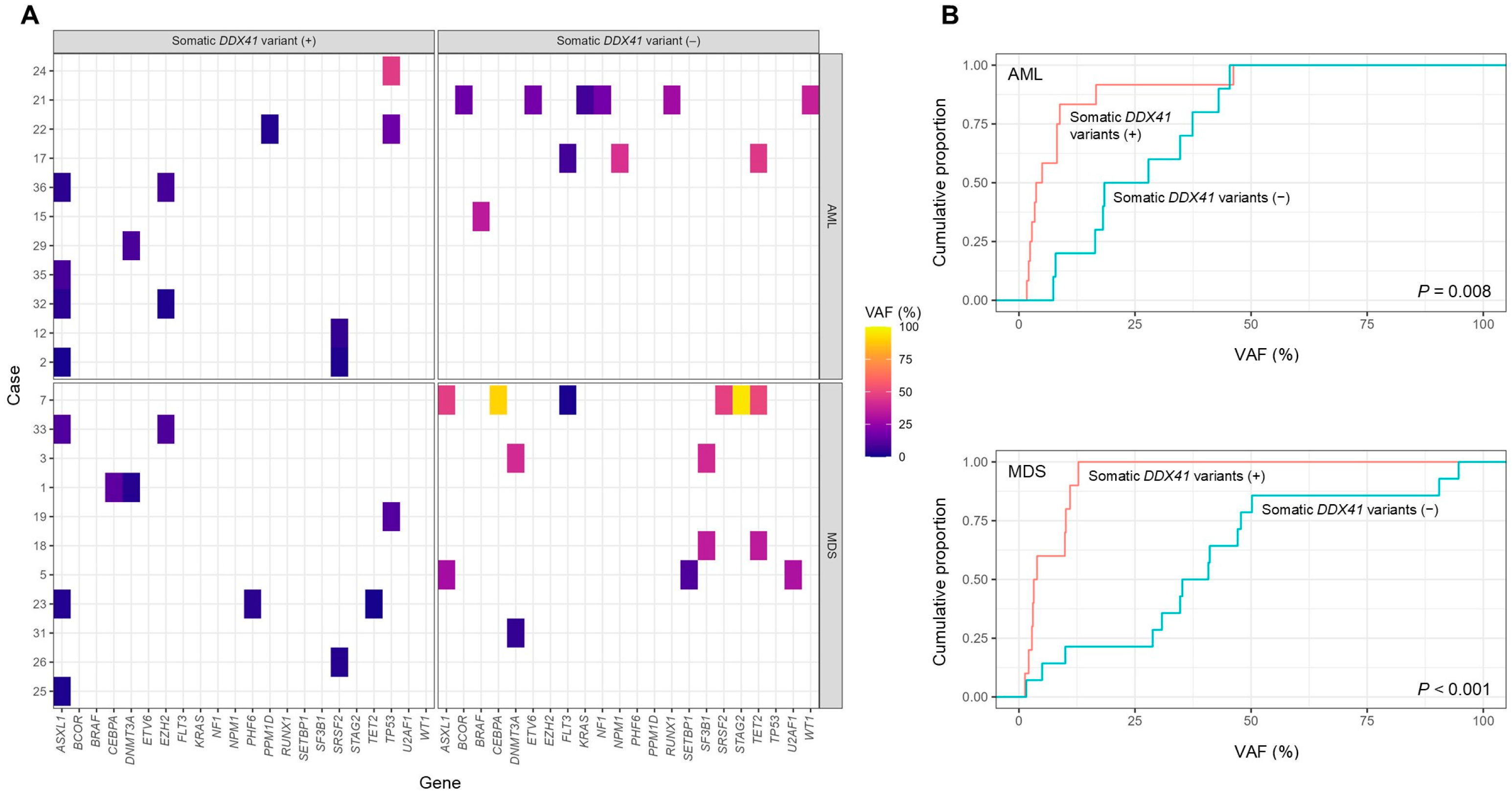 | Somatic DDX41 mutation | 9 (69.2) | 10 (66.7) | 1.000 |