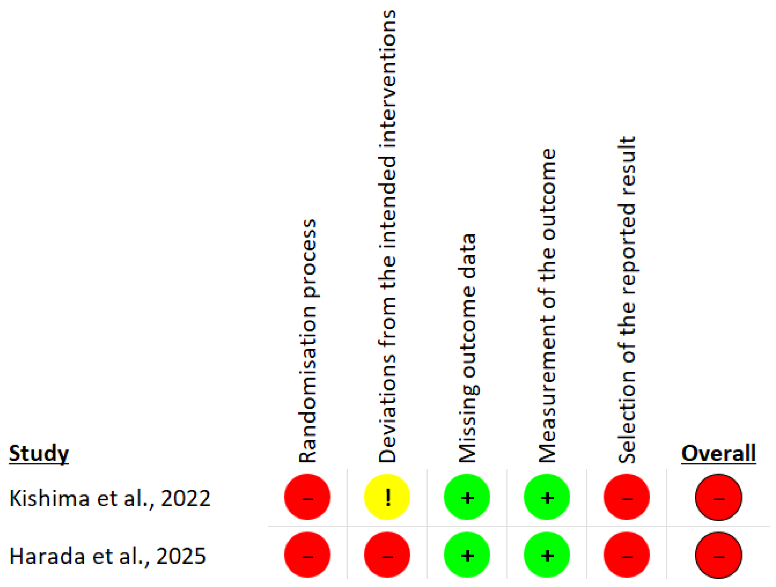 | Overall bias | Risk of bias judgement | High | High |