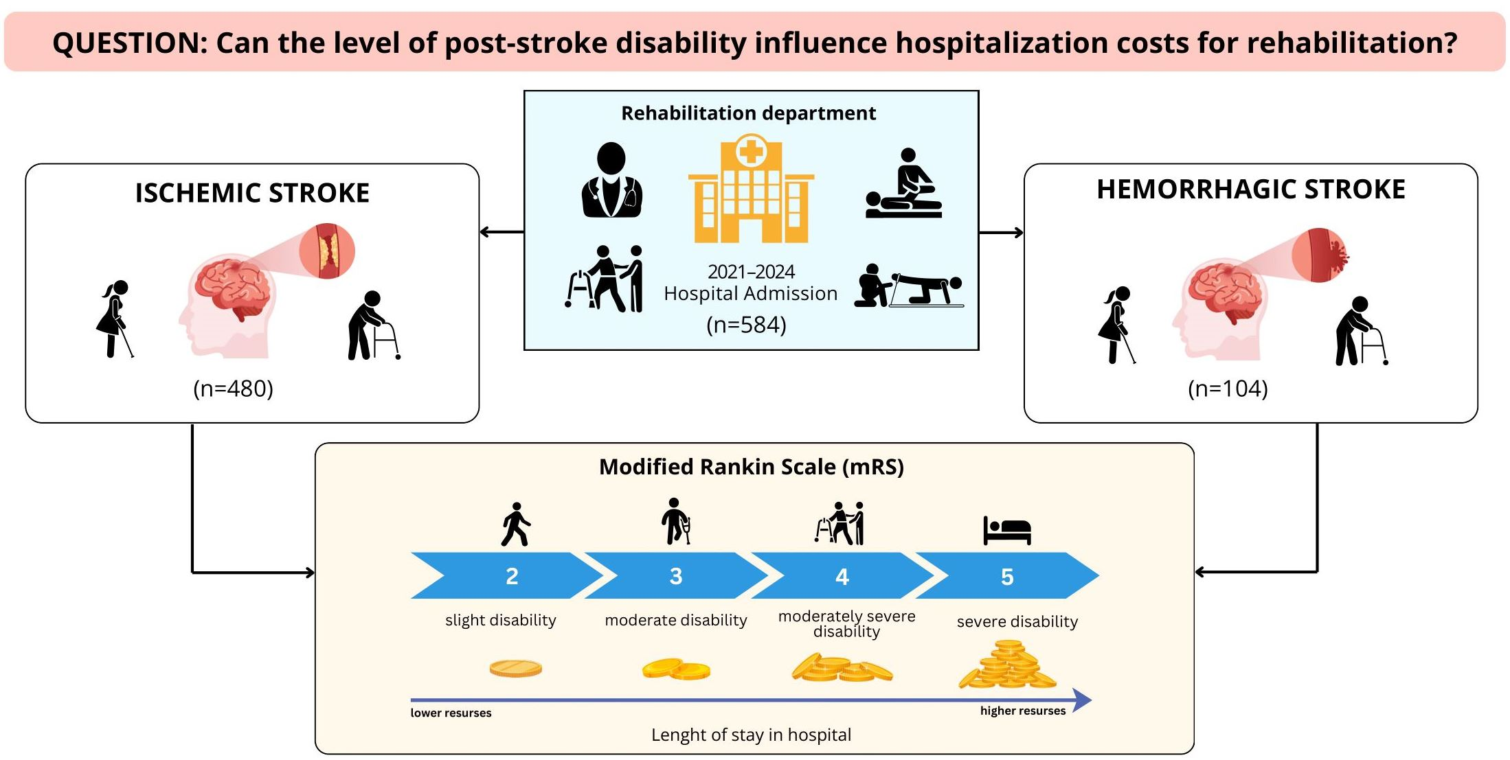 - The objective of this study was to ascertain the financial implications of rehabilitation and post-stroke disability. To this end, patients with other causes of disability were excluded from this study. This potential ambiguity could have led to misinterpretation of the underlying causes of disability, potentially impacting the validity of our results.