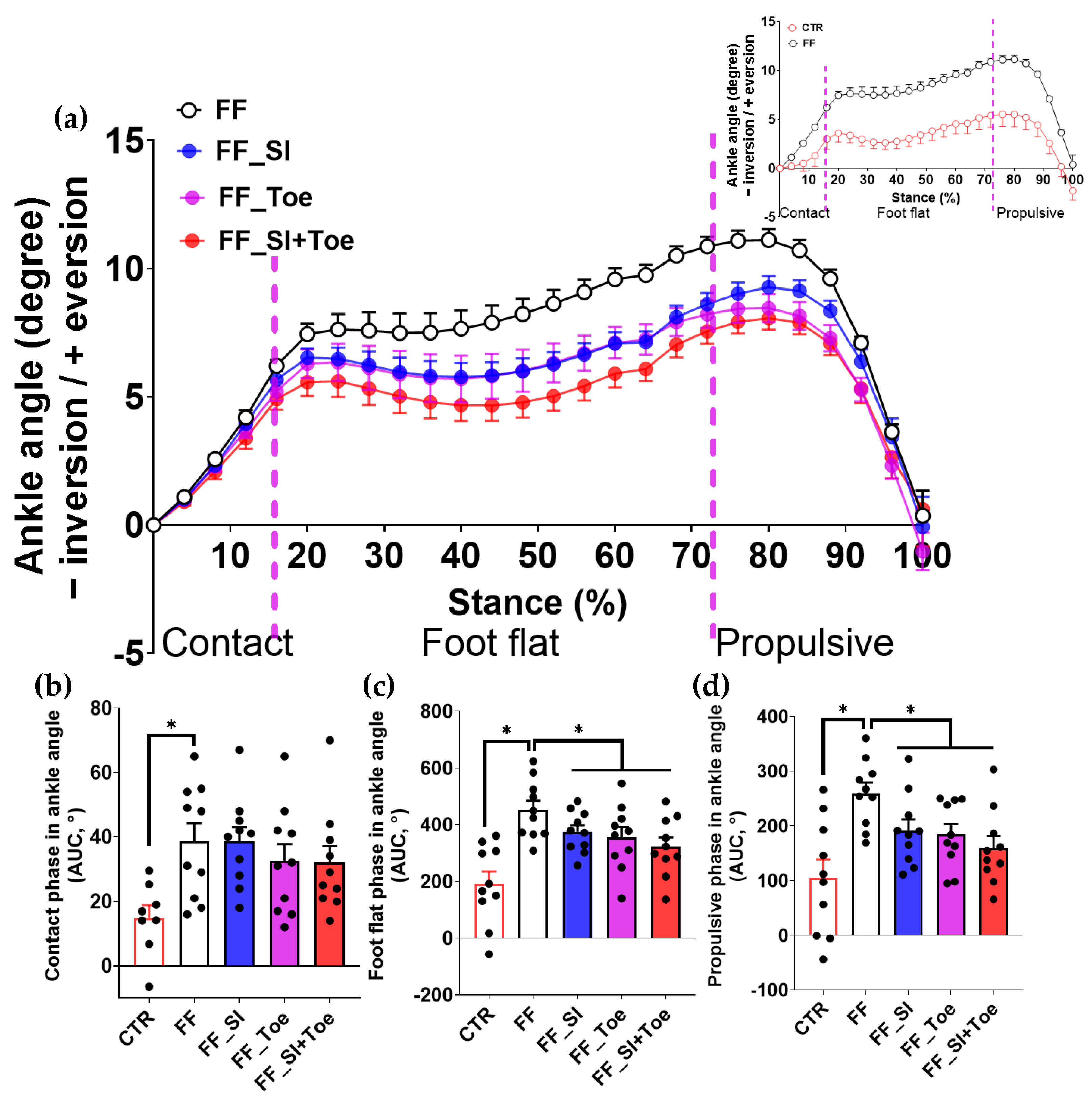 Chicago/Turabian StyleJung, Eui-Young, Shi Lei, Yujin Jeong, Hwi-Young Cho, and Sanghee Park. 2025. "3D-Printed Arch Supports Combined with Toe Spreaders Modulate Phase-Specific Ankle Alignment and Muscle Activity in Young Adults with Functional Flat Foot" Journal of Clinical Medicine 14, no. 22: 8017. https://doi.org/10.3390/jcm14228017