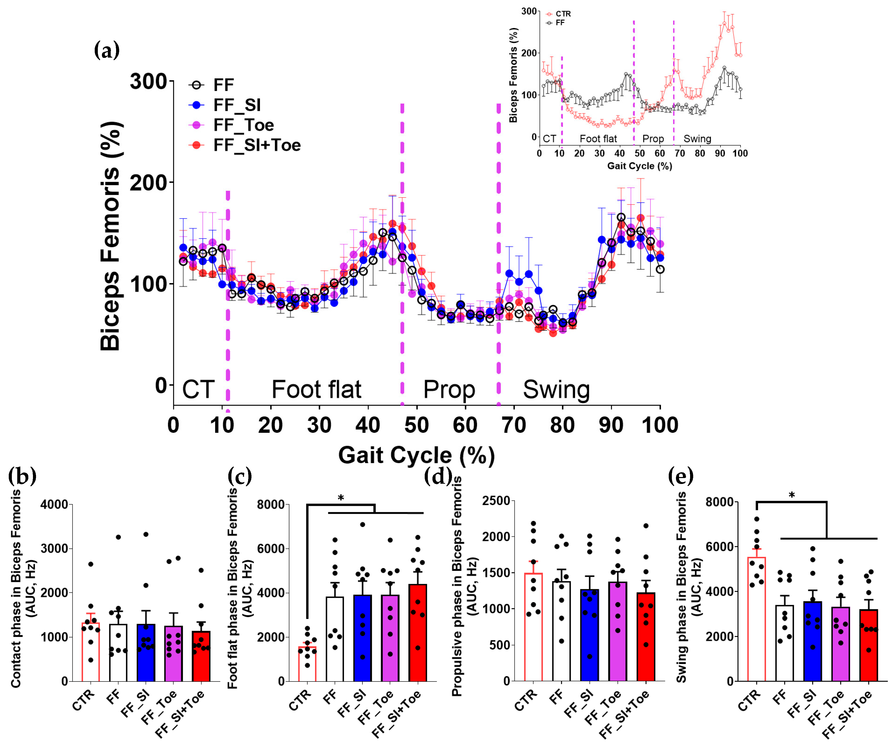 - Lee, K.S.; Ko, E.; Lee, S.Y. Immediate Effect of the Toe Spreader on Tibialis Anterior and Peroneus Longus Muscle Activities: A Pilot Study. J. Phys. Ther. Sci. 2013, 25, 293–295. [Google Scholar] [CrossRef]