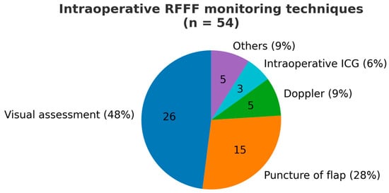 Pie chart showing the different modalities utilized for monitoring the flap’s viability during the harvesting procedure.