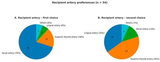 Pie charts displaying the preferences of survey respondents regarding recipient arteries.