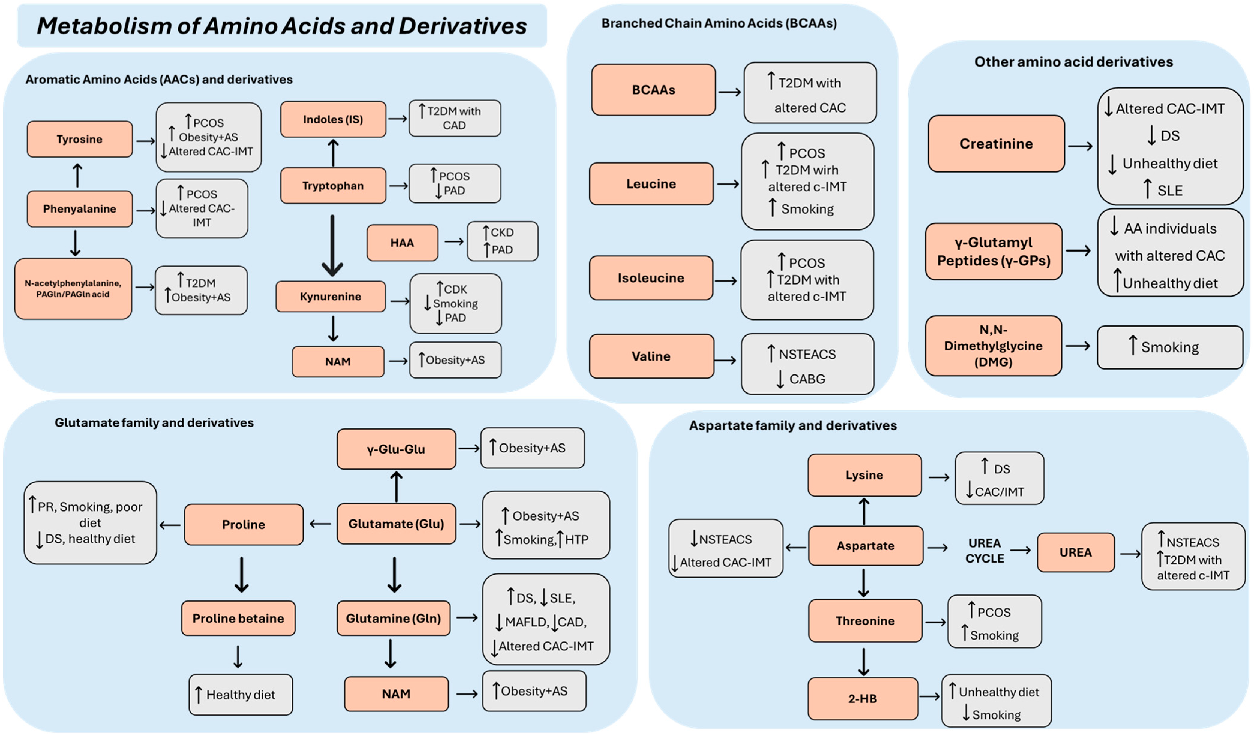 | Lysine | ↓ | Serum | Altered CAC-IMT | Tzoulaki, 2019 [13] |