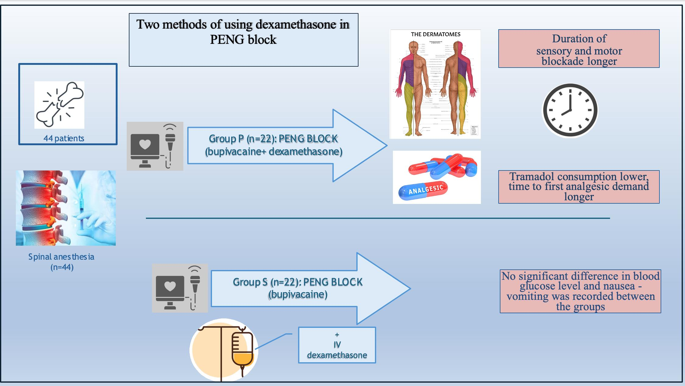 7]. In PENG block applications, it is recommended to add dexamethasone as an adjuvant to extend the effect of the local anesthetic and enhance the overall quality of the block [