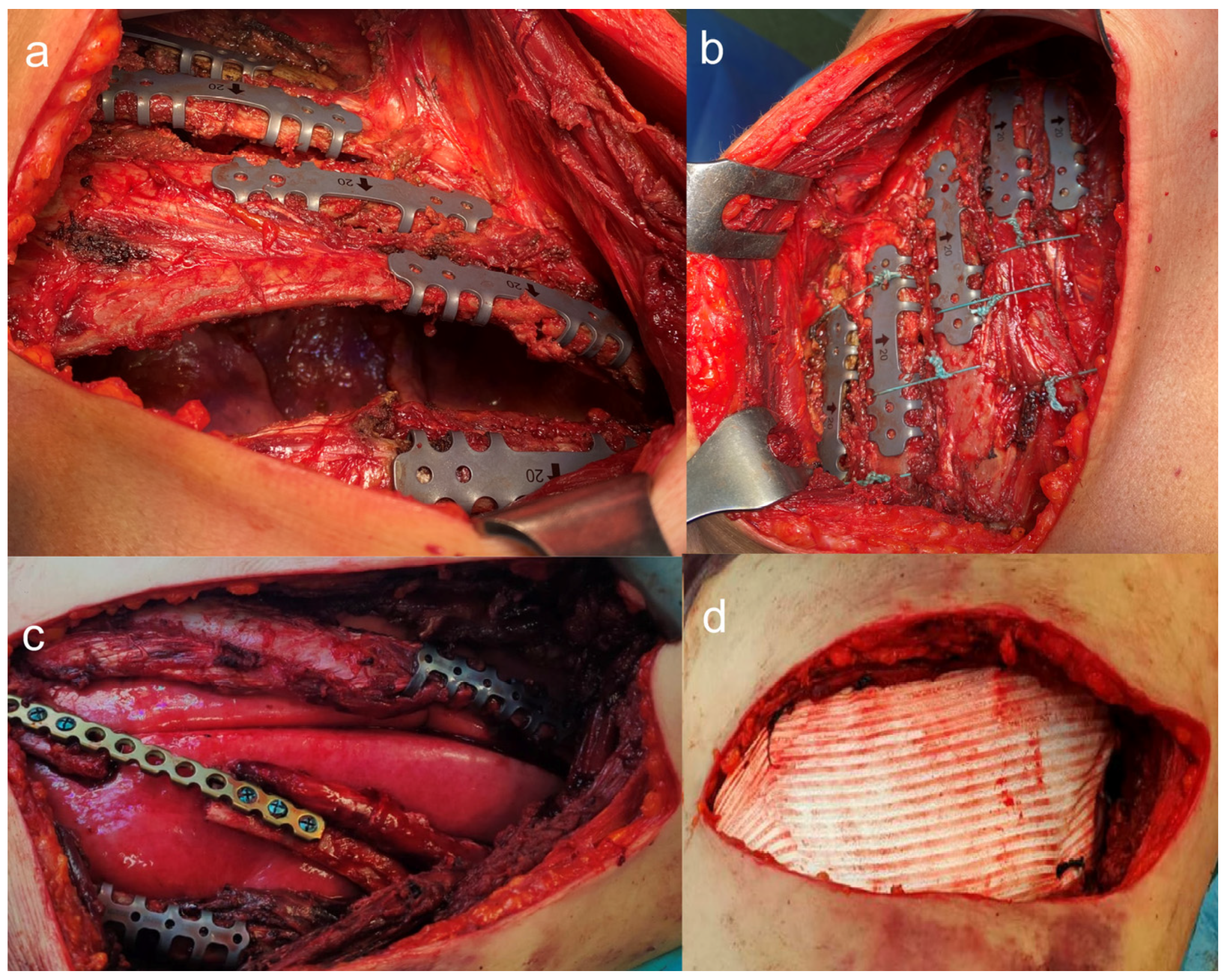 - Sermonesi, G.; Bertelli, R.; Pieracci, F.M.; Balogh, Z.J.; Coimbra, R.; Galante, J.M.; Hecker, A.; Weber, D.; Bauman, Z.M.; Kartiko, S.; et al. Surgical stabilization of rib fractures (SSRF): The WSES and CWIS position paper. World J. Emerg. Surg. 2024, 19, 33. [Google Scholar] [CrossRef]