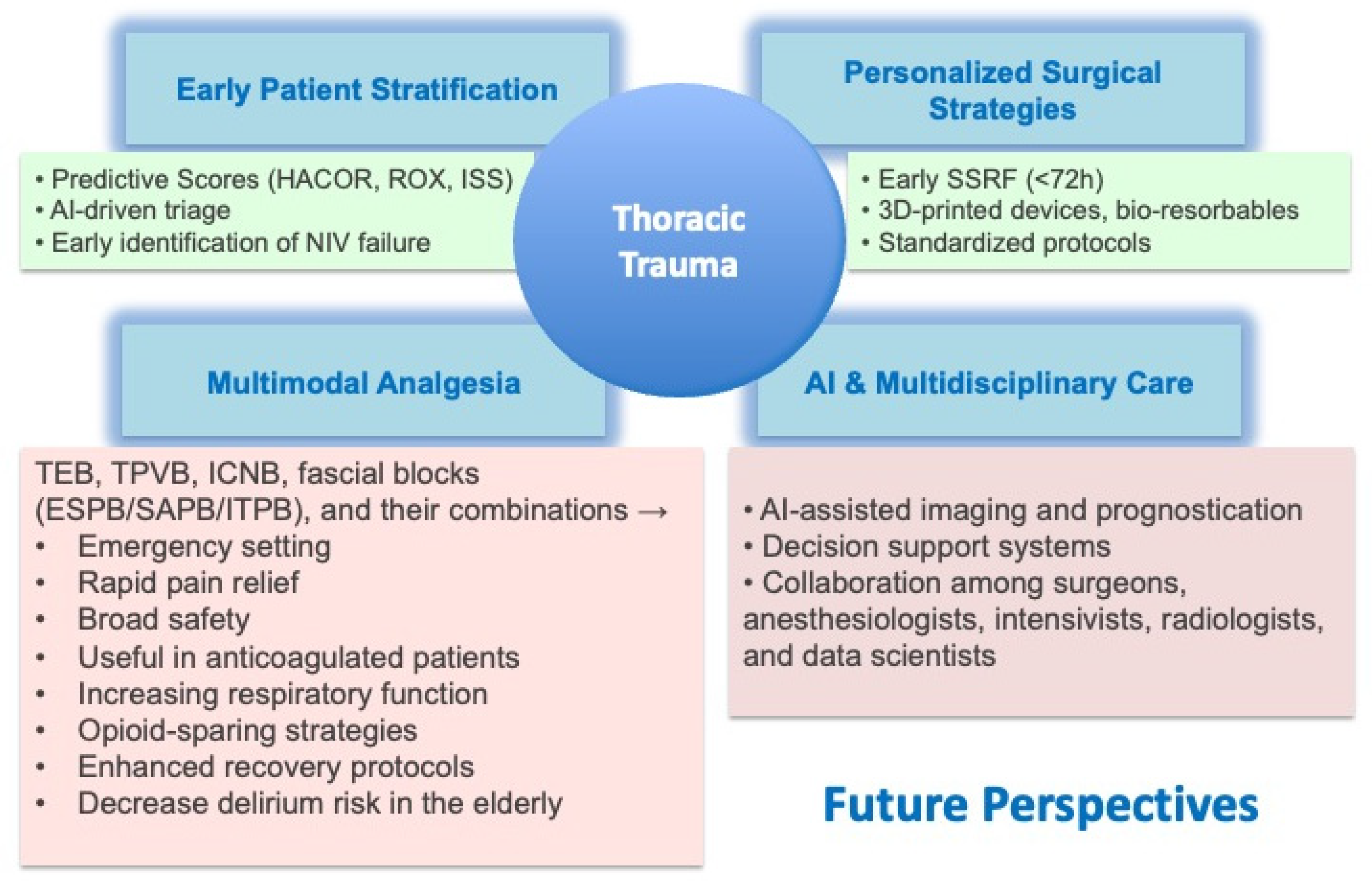Angeletti, C.; Zaccagna, G.; Vaccarili, M.; Salve, G.; De Vico, A.; Ciccozzi, A.; Divisi, D. Contemporary and Future Perspectives on Thoracic Trauma Care: Surgical Stabilization, Multidisciplinary Approaches, and the Role of Artificial Intelligence. J. Clin. Med. 2025, 14, 8041. https://doi.org/10.3390/jcm14228041
