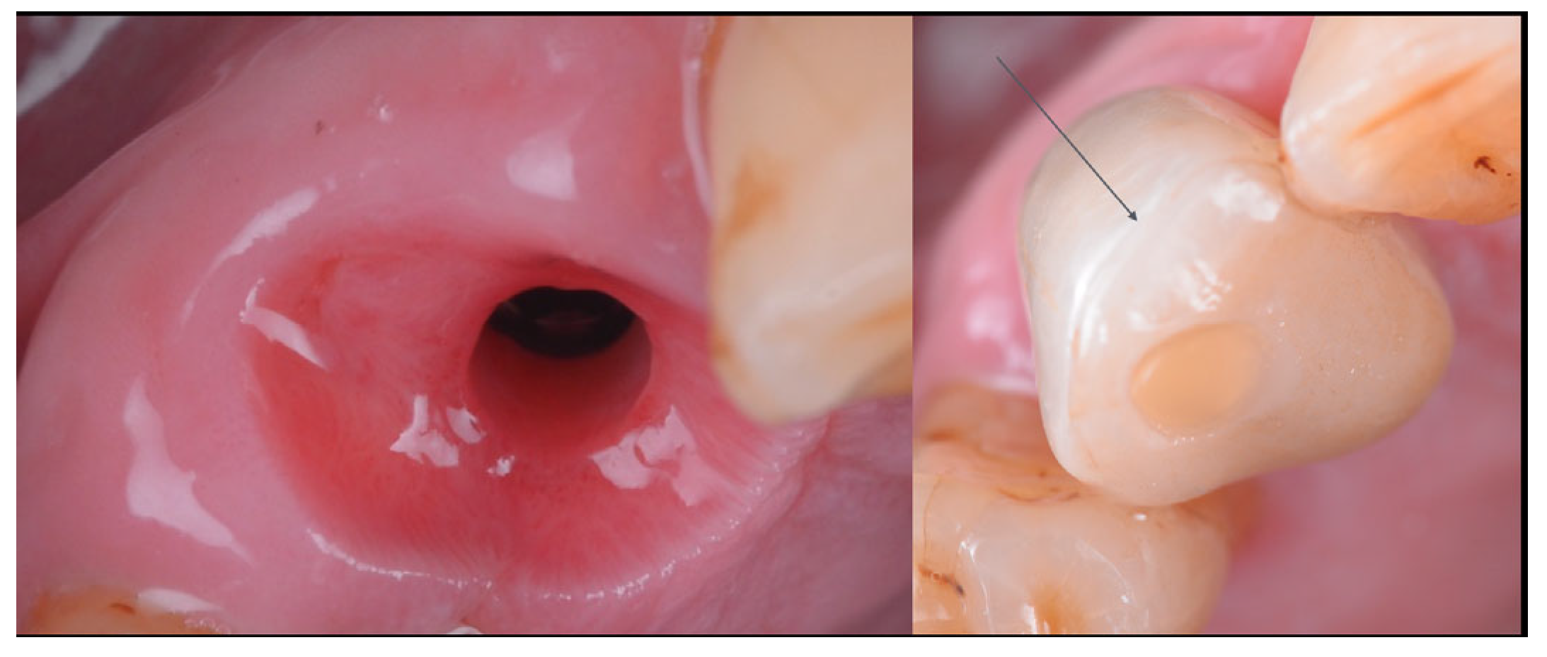 - González-Martín, O.; Lee, E.; Weisgold, A.; Veltri, M.; Su, H. Contour management of implant restorations for optimal emergence profiles: Guidelines for immediate and delayed provisional restorations. Int. J. Periodontics Restor. Dent. 2020, 40, 61–70. [Google Scholar] [CrossRef]