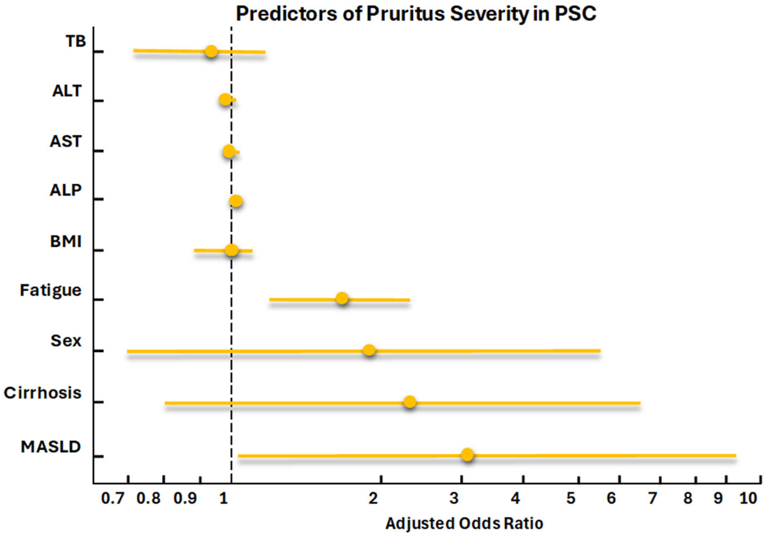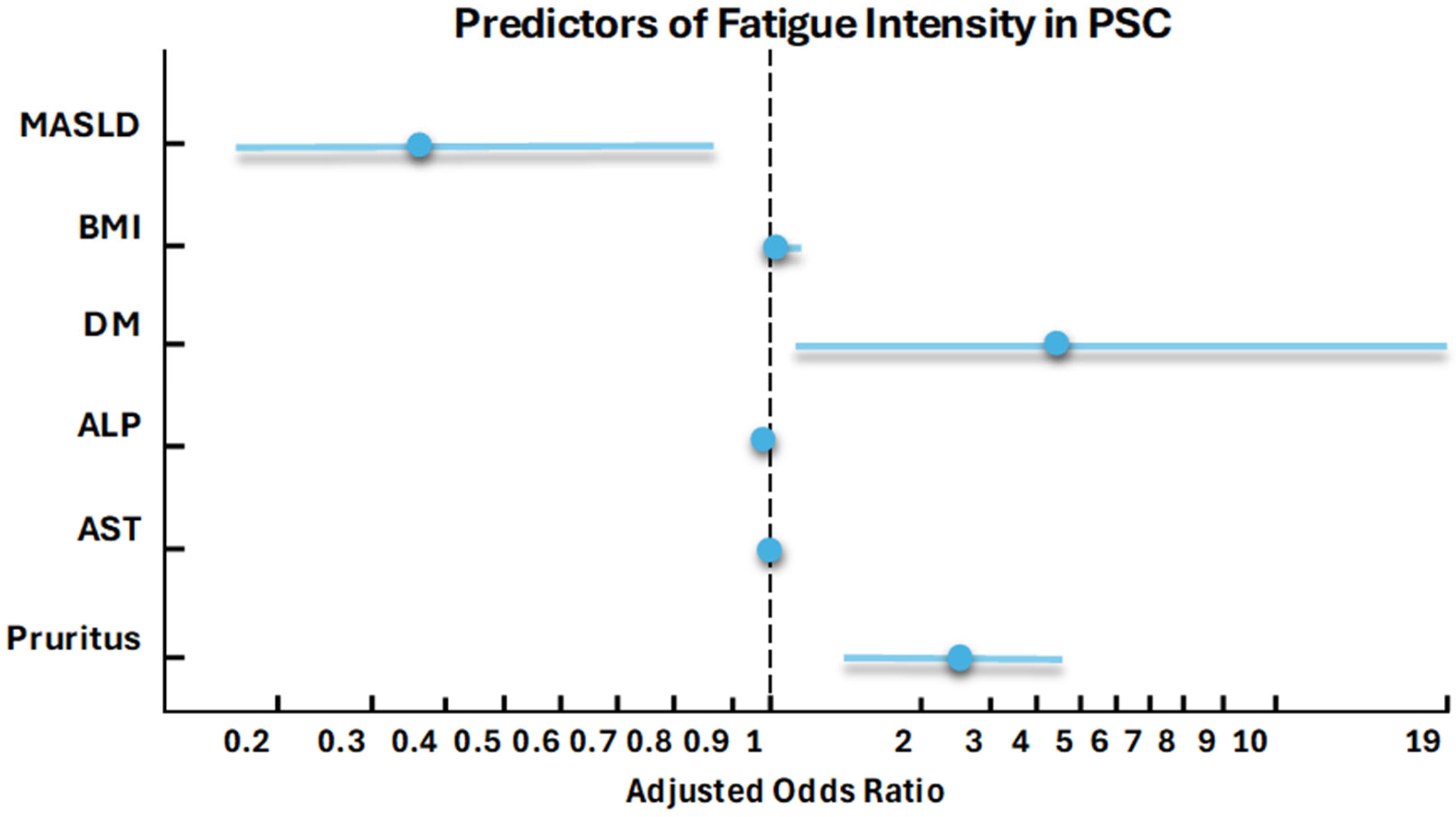 - Yilmaz, Y.; Keklikkiran, C.; Racila, A.; Stepanova, M.; Younossi, Z.M. Pruritus and fatigue in patients with metabolic dysfunction–associated steatotic liver disease: A study of Turkish patients from the Global NASH/MASH Registry. Clin. Transl. Gastroenterol. 2025, 16, e00844. [Google Scholar] [CrossRef] [PubMed]