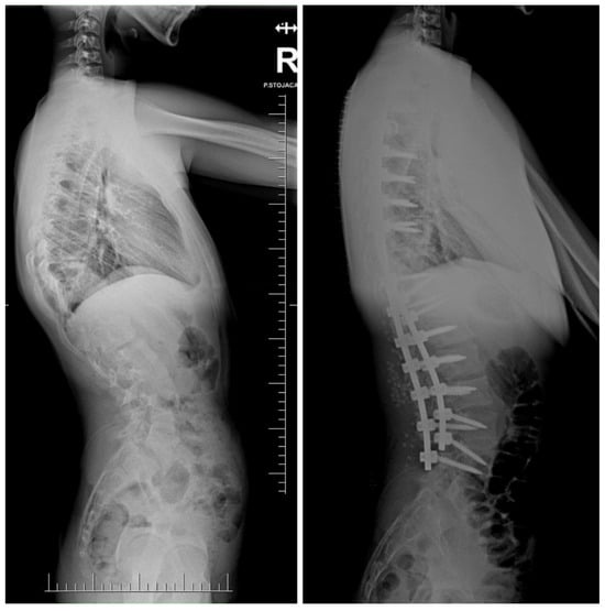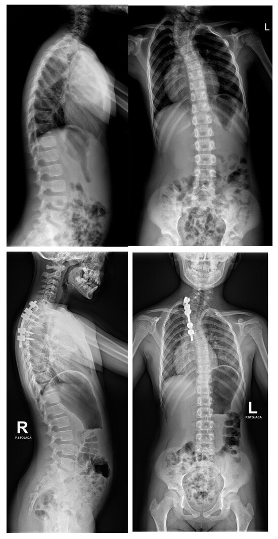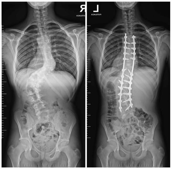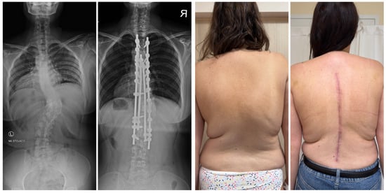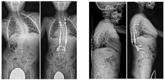 - Grabala, P.; Kowalski, P.; Rudziński, M.J.; Polis, B.; Grabala, M. The surgical management of severe scoliosis in immature patient with a very rare disease—Costello syndrome—Clinical example and brief literature review. Life 2024, 14, 740. [Google Scholar] [CrossRef]
