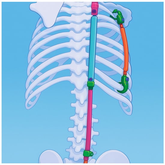 - Grabala, P. Minimally invasive controlled growing rods for the surgical treatment of early-onset scoliosis: A surgical technique video. J. Pers. Med. 2024, 14, 548. [Google Scholar] [CrossRef]