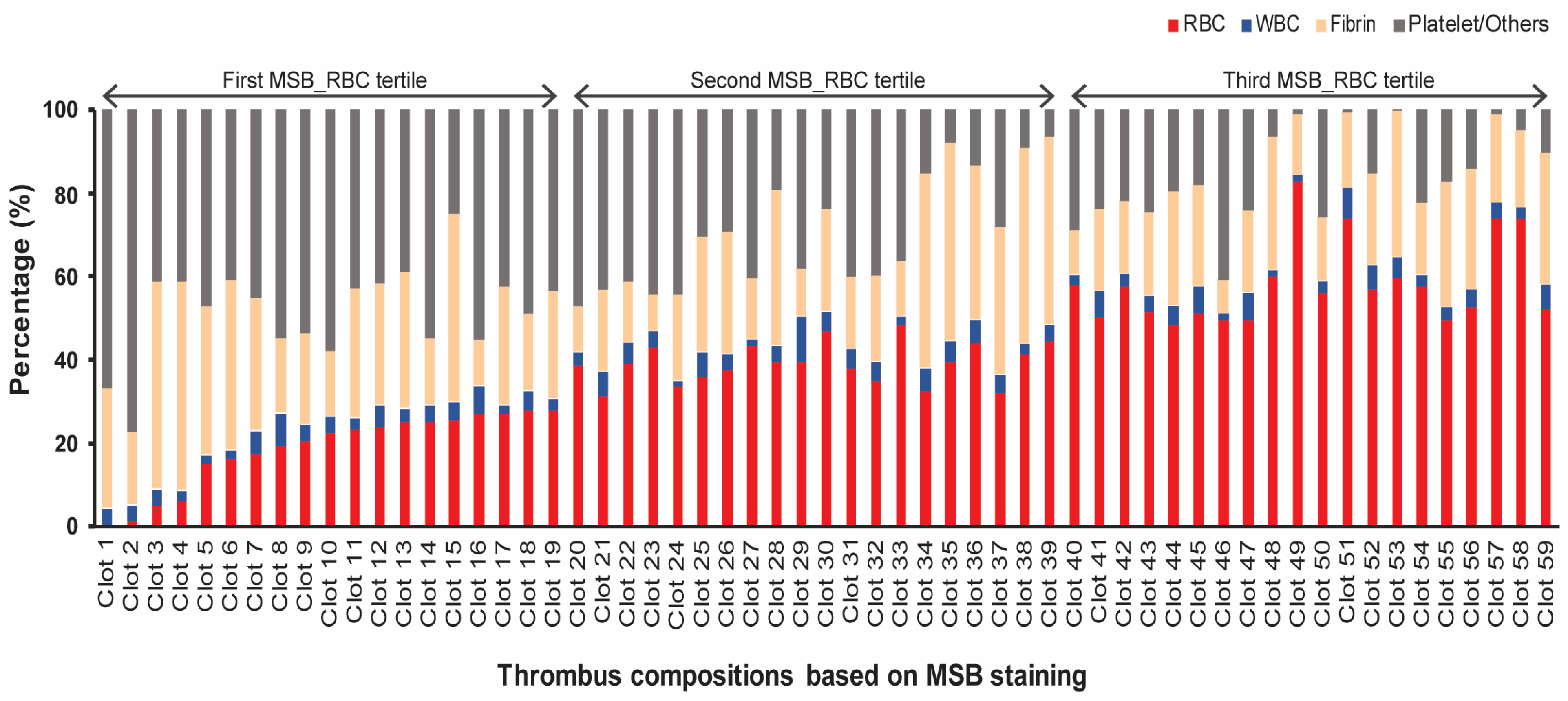 - Baek, J.H.; Kwon, I.; Kim, S.; Nam, H.S.; Kim, Y.D.; Kim, B.M.; Kim, D.J.; Song, T.J.; Heo, J.H. Thrombi with a Higher Erythrocyte Composition Are More Fragile in Acute Stroke. J. Stroke 2024, 26, 454–457. [Google Scholar] [CrossRef]
