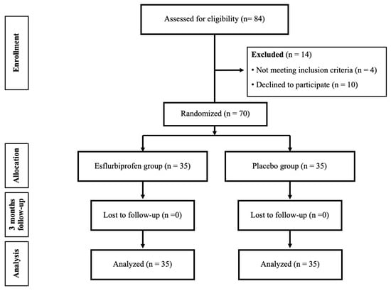 | Esflurbiprofen Group | Placebo Group | p-Value | |