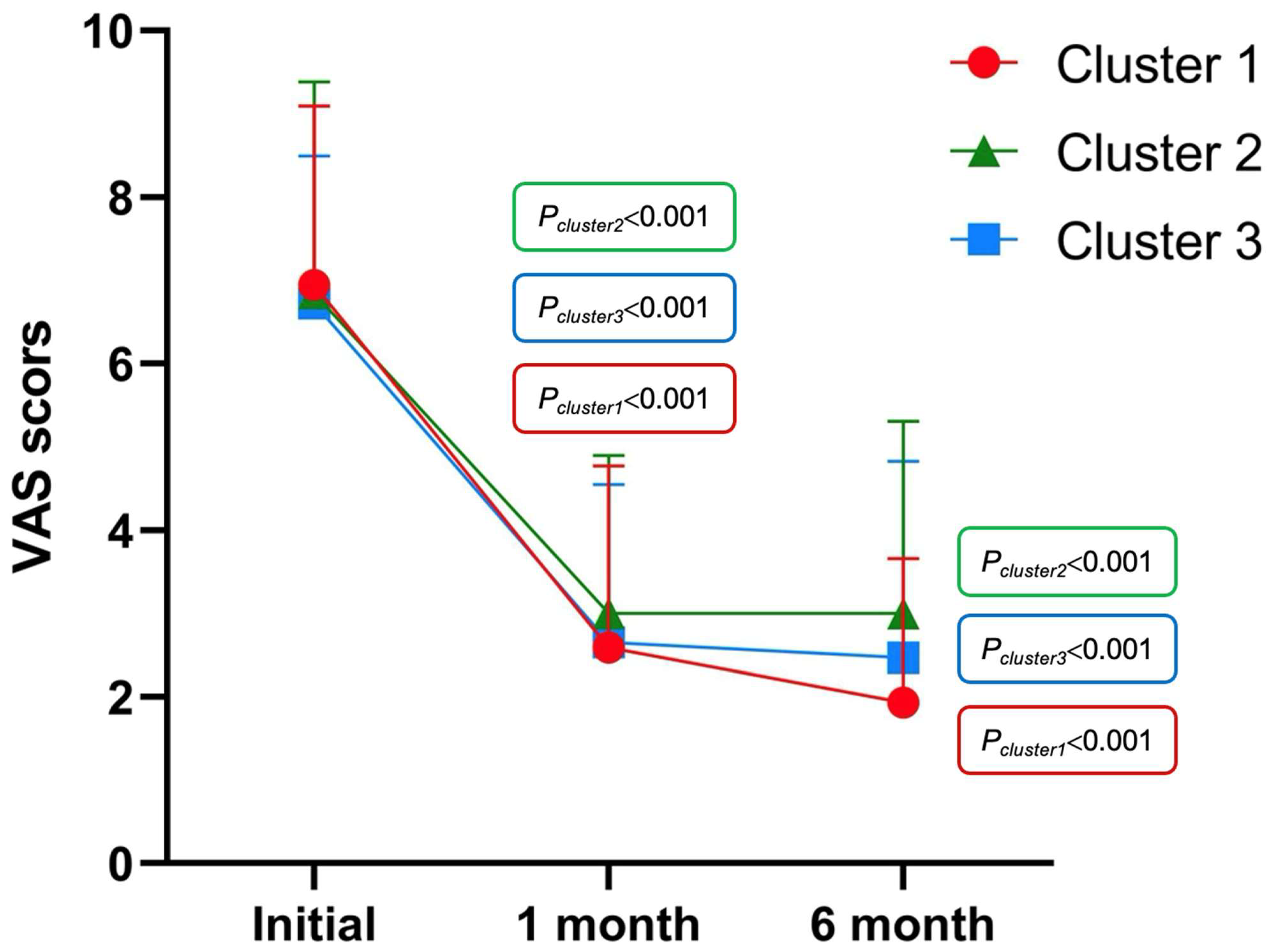 | VAS | 6.94 (2.15) | 6.84 (2.54) | 6.72 (1.77) | 0.950 | 0.457 | 0.482 |
