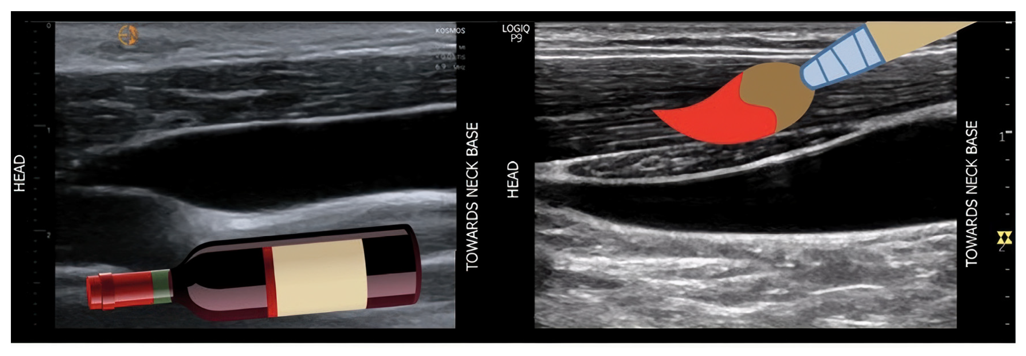 | Internal Jugular (IJ) Vein | Moderate to High • Superficial, easily visualized with linear probe. • Patient positioning (Trendelenburg) can facilitate. | • Minimal respiratory variation. Less influenced by intra-abdominal pressure (IAP) than portal/hepatic veins. • Rapidly responsive to haemodynamic changes. • Useful for trending over time. | • Highly sensitive to transducer pressure. Can easily occlude the vein. • Can be difficult in patients with short necks, obesity, or cervical collars. • Not validated for formal VExUS grading. Best used as a qualitative “congestion marker.” | • Loss of phasicity: The normal, pulsatile waveform becomes monophasic or severely blunted. • Continuous, high-velocity flow indicates significantly elevated right atrial pressure. |