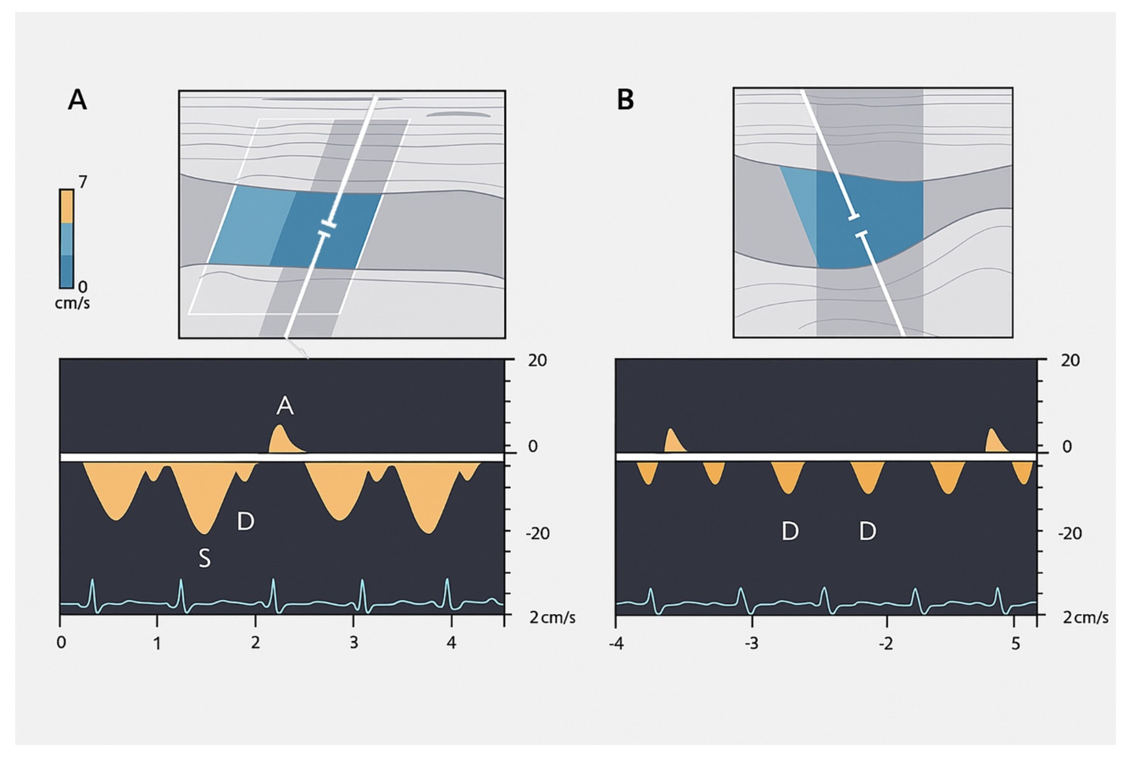 3.1.2. Ecocolordoppler and Spectral Velocity Variations