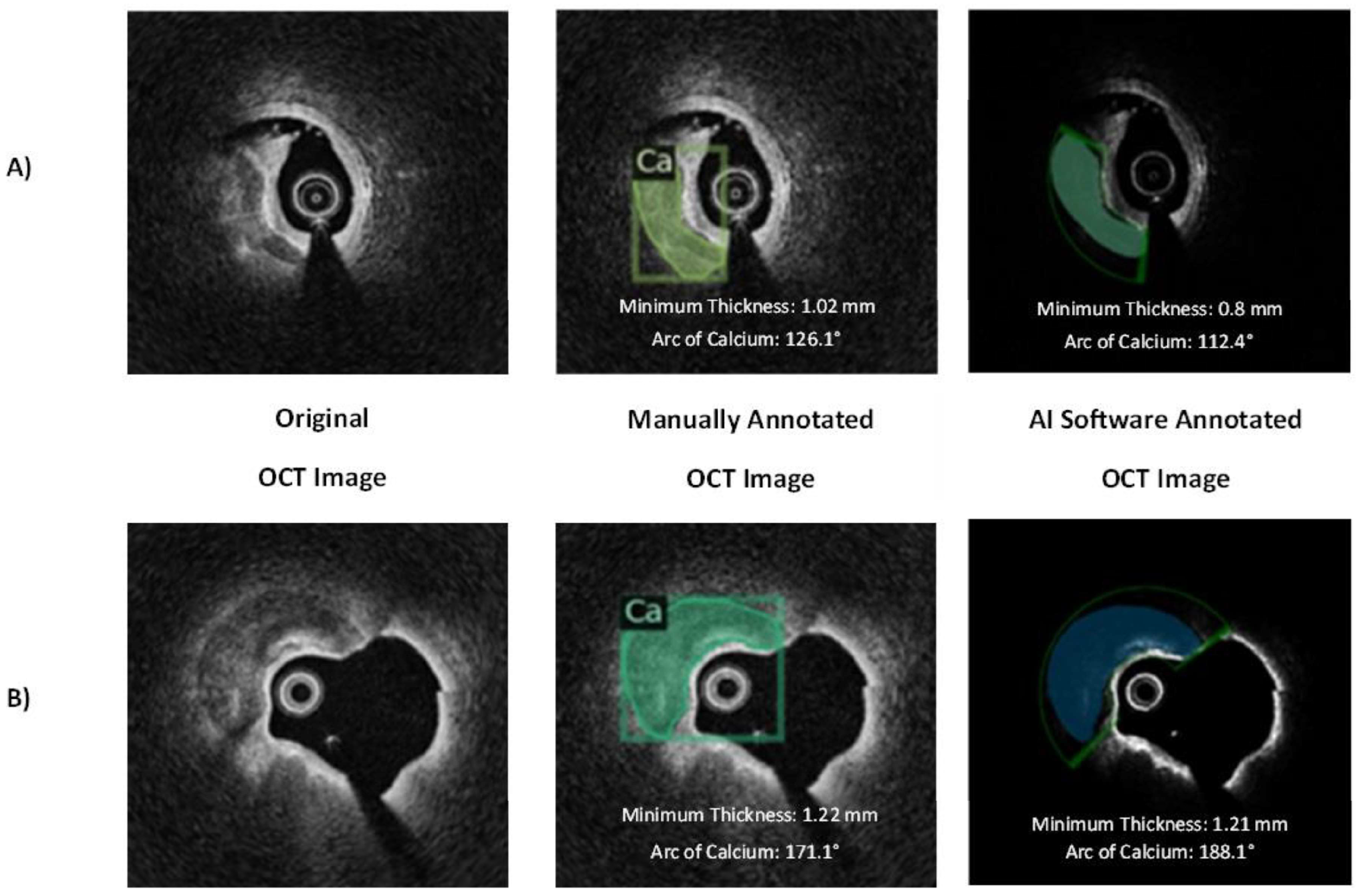McCarthy, K.J.; Larnard, E.A.; Anderson, C.K.; Chowdhury, M.; Shalev, R.; Hakim, D.A.; Croce, K.J.; Osborn, E.A. Automated Artificial Intelligence Mapping of Coronary Plaque Calcification: A Comparison with Manual Intravascular Image Analysis. J. Clin. Med. 2025, 14, 8166. https://doi.org/10.3390/jcm14228166