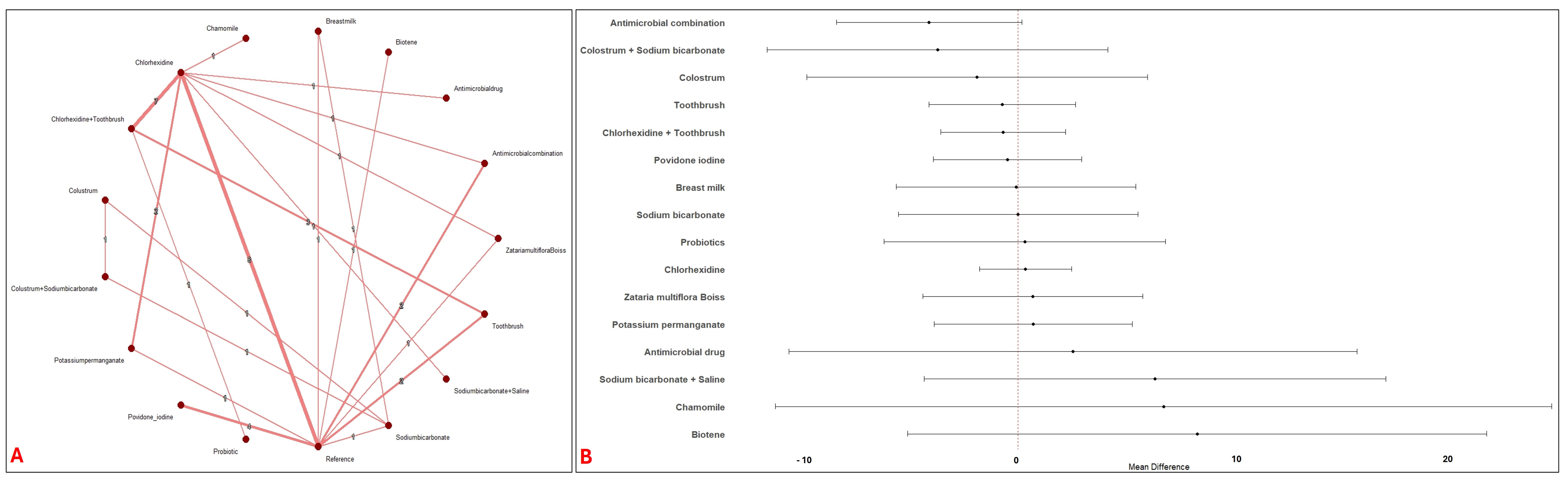 | Panchabai [84] | 2009 | India | Medical | RCT | 3 | Chlorhexidine | No | 0.2 | 2 | 88 | NA | NA | Not provided | NA | Clinical + Radiological + Microbiological |