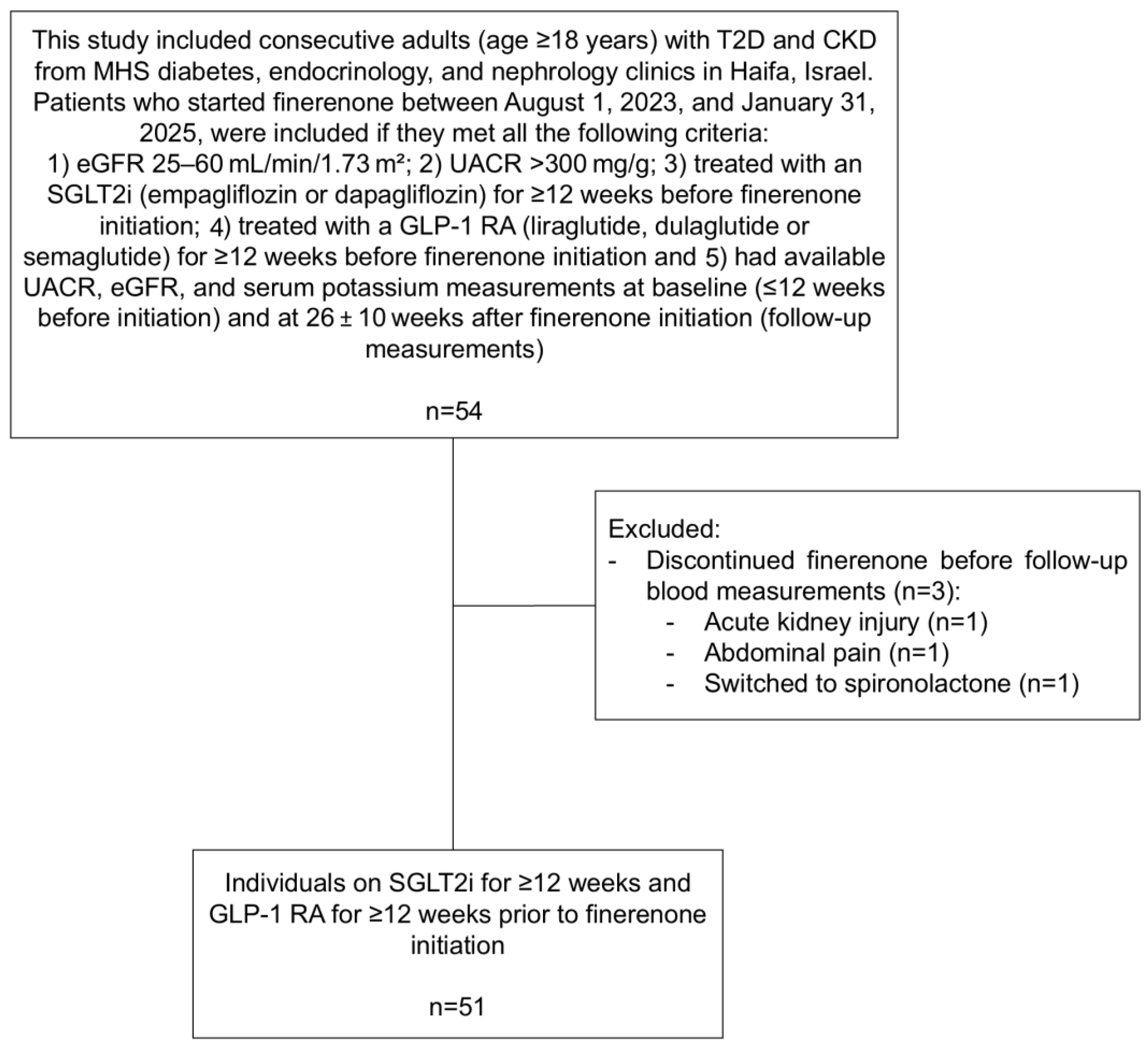 APA StyleNakhleh, A., Khazim, K., & Shehadeh, N. (2025). Real-World Effectiveness of Finerenone Added to SGLT2 Inhibitor and GLP-1 Receptor Agonist Therapy in Individuals with Type 2 Diabetes and Chronic Kidney Disease. Journal of Clinical Medicine, 14(22), 8209. https://doi.org/10.3390/jcm14228209