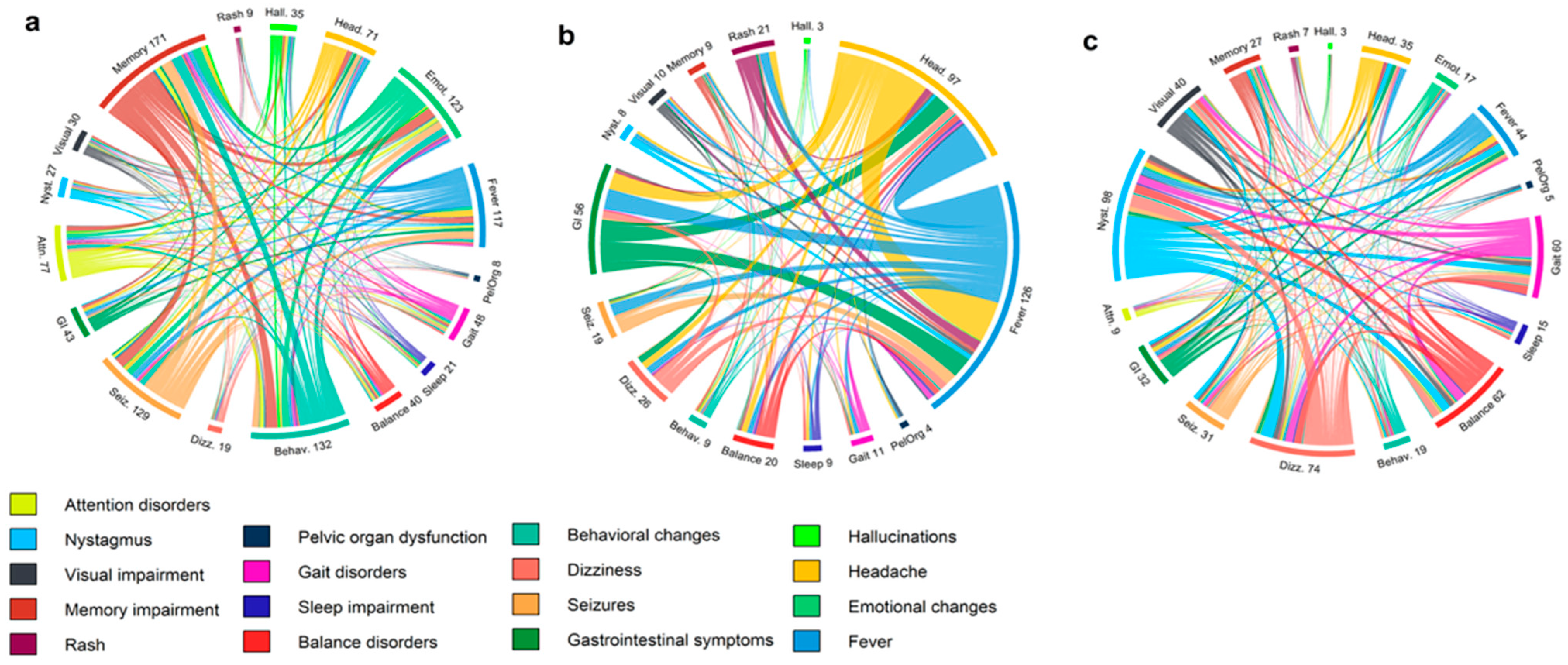 | Ataxia | 27 (32.5%) | 62 (41.3%) | 37 (44.0%) | 0.1854 | 0.1258 |