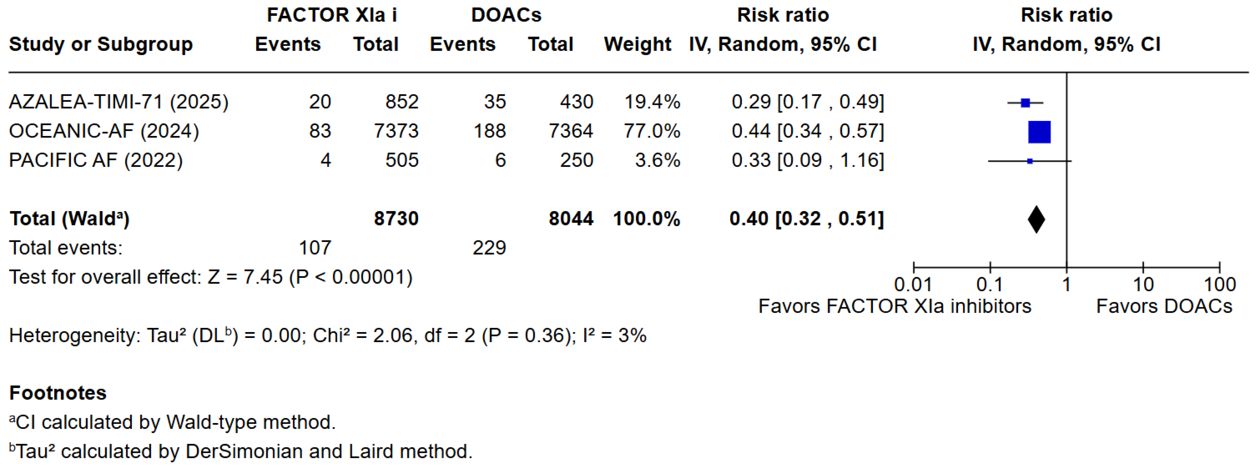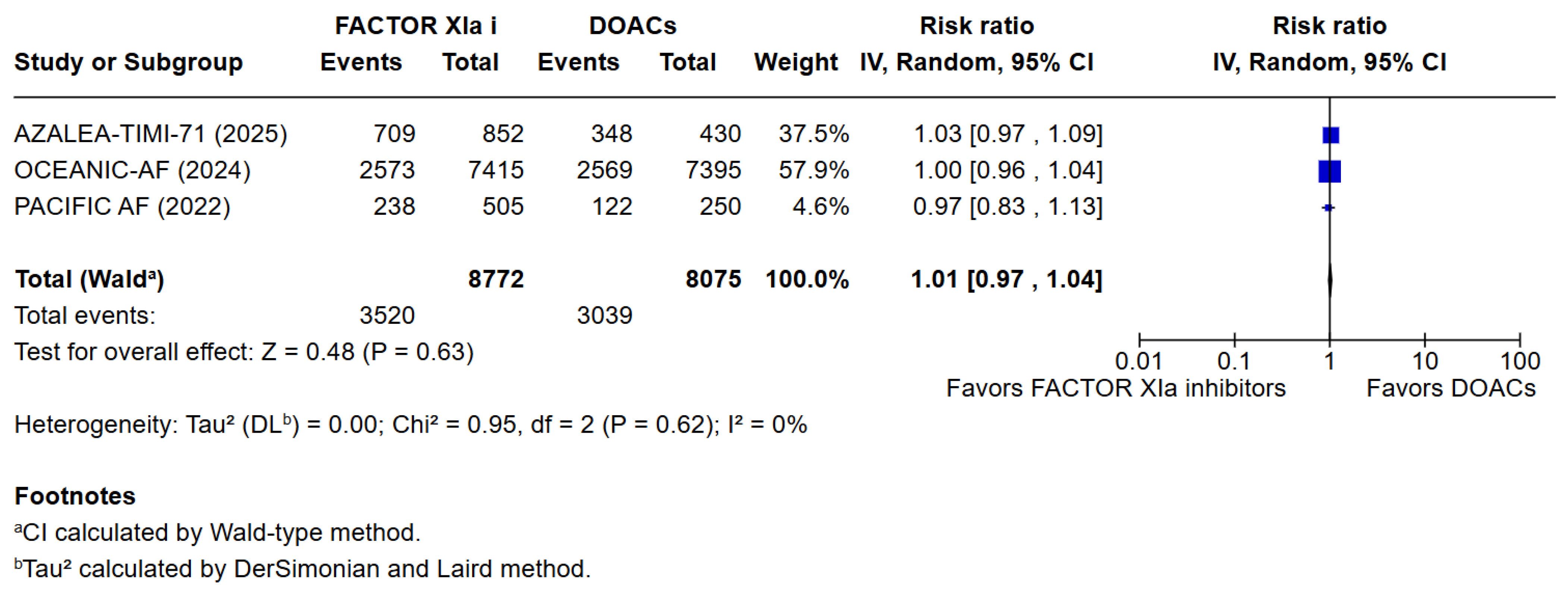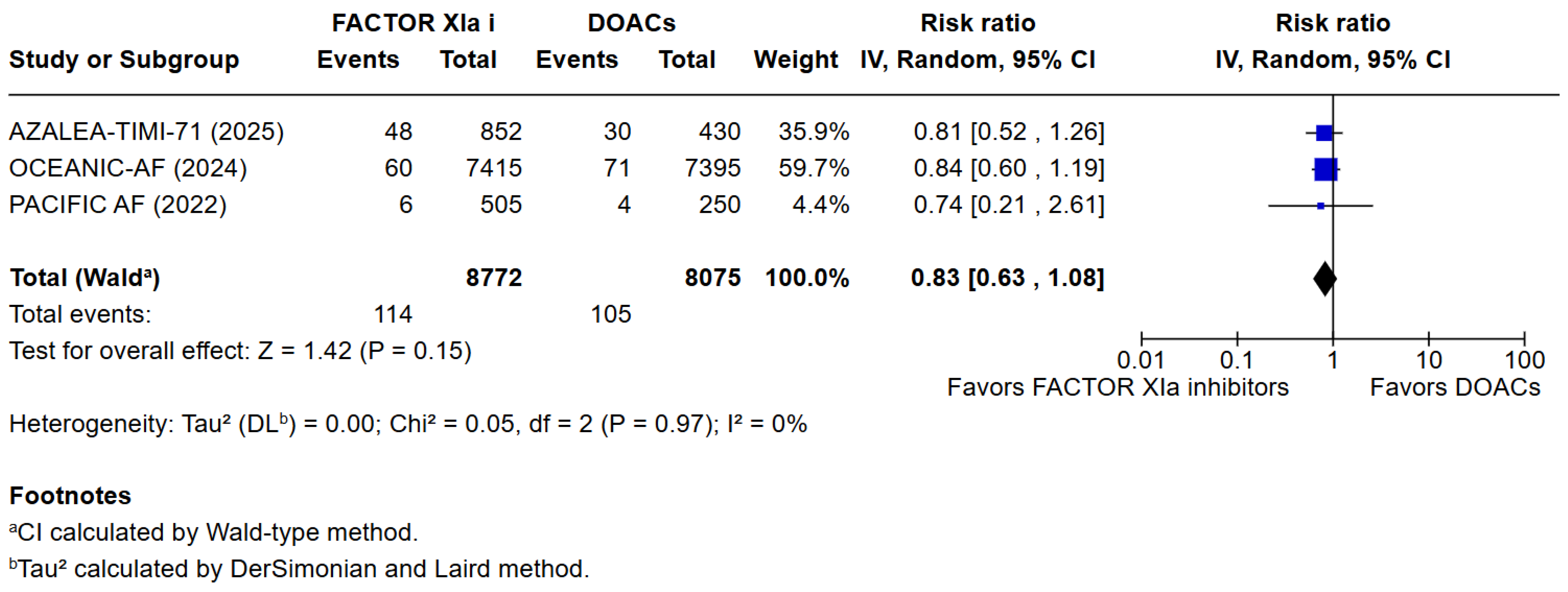 Chicago/Turabian StyleKhater, Jacinthe, Marco Frazzetto, Shamin Hayat Mahmud, Ashkan Yahyavi, Sara Malakouti, Bharat Khialani, and Bernardo Cortese. 2025. "Balancing Safety and Efficacy: Factor XIa INHIBITORS vs. DOACs in Patients with Atrial Fibrillation: A Systematic Review and Meta-Analysis of Randomized Controlled Trials" Journal of Clinical Medicine 14, no. 22: 8234. https://doi.org/10.3390/jcm14228234