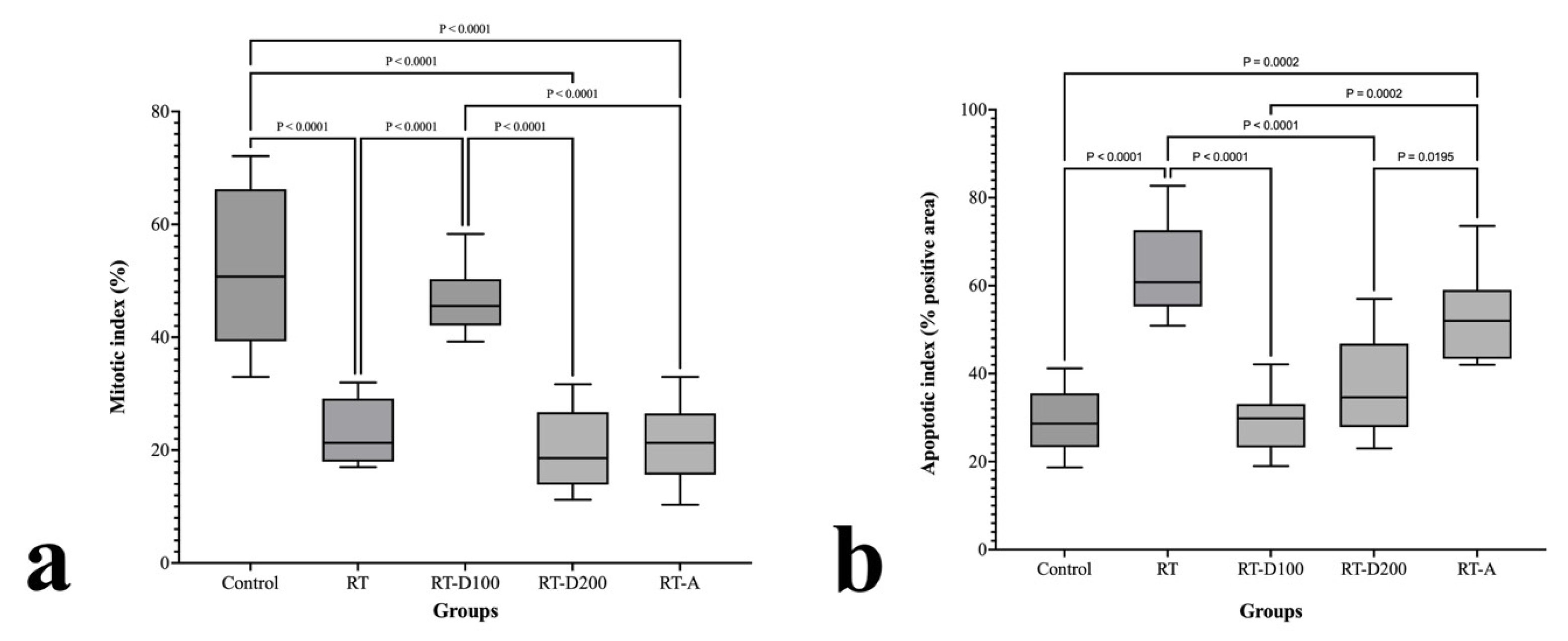 Beyazal Polat H, Yilmaz H, Demir K, Kilinc K, Gülhan B, Rakici SY, Tumkaya L. Could Different Doses of Dexmedetomidine Be as Effective as Amifostine Against Radiotherapy-Induced Liver Injury in Rats? Evidence from Mitotic, Apoptotic, Oxidative, and Neurogenic Insights. Journal of Clinical Medicine. 2025; 14(22):8238. https://doi.org/10.3390/jcm14228238