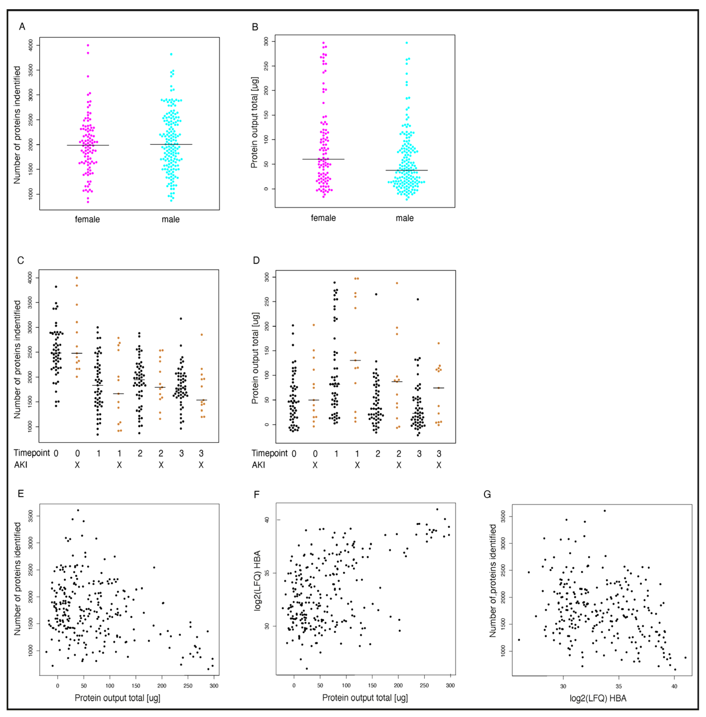 3.5. Selection of AKI Biomarker Candidates from Urine Proteome Profiles