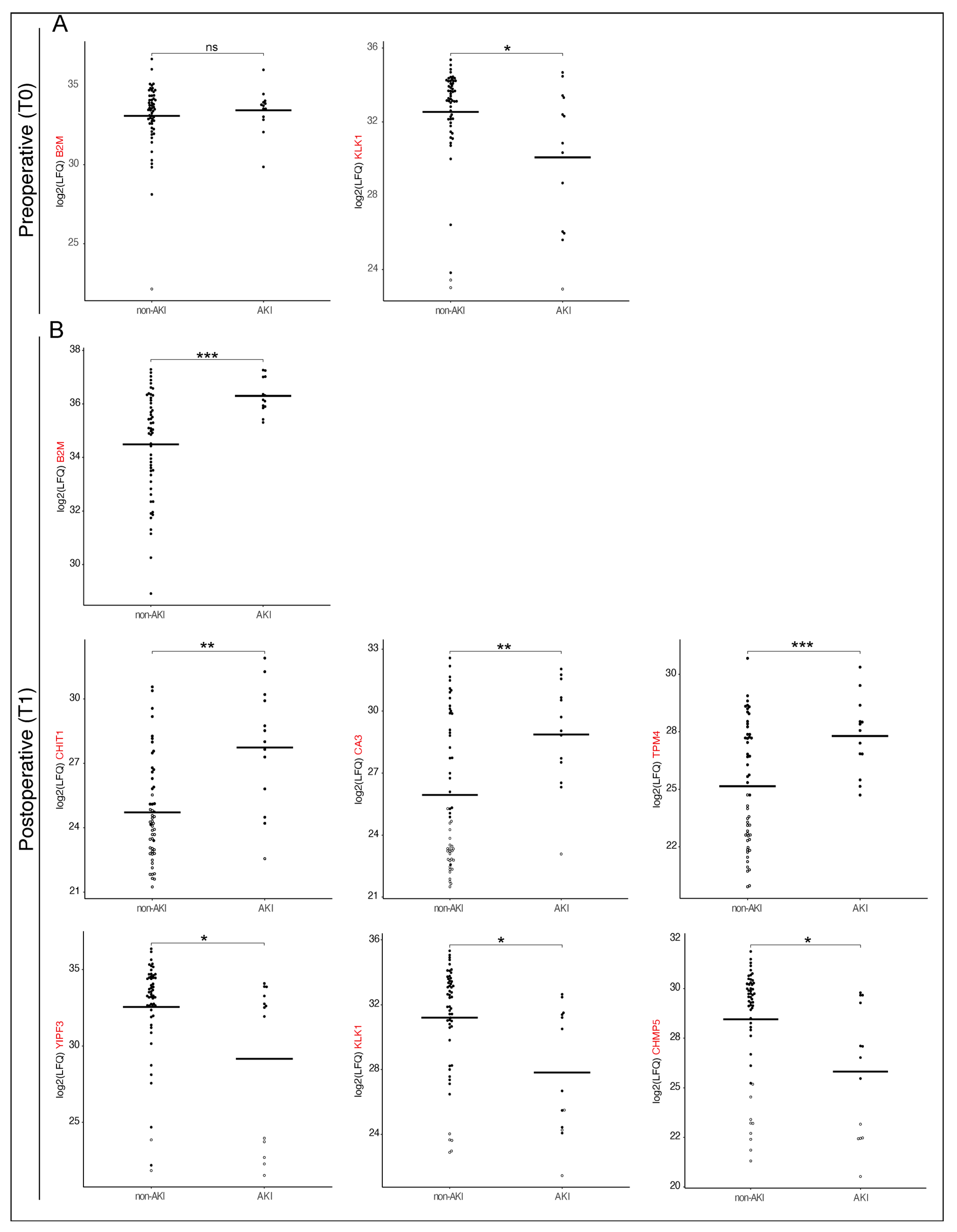 Chicago/Turabian StyleSeiler, Raphael, Alexa Leona Herre, Marieluise Kirchner, Matthias Ziehm, Philipp Mertins, Felix Berger, Joachim Photiadis, Giang Tong, Liliya Brankova, Katharina R. L. Schmitt, and et al. 2025. "Early Detection of Acute Kidney Injury After Congenital Heart Surgery—Using Urine Proteomics to Identify New Biomarker Candidates: A Prospective Clinical Study" Journal of Clinical Medicine 14, no. 22: 8253. https://doi.org/10.3390/jcm14228253