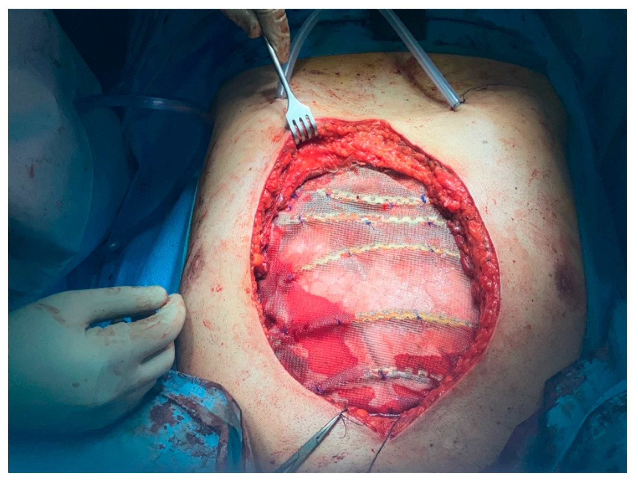 - Huh, J.; Bakaeen, F.; Chu, D.; Wall, M.J. Transverse sternal plating in secondary sternal reconstruction. J. Thorac. Cardiovasc. Surg. 2008, 136, 1476–1480. [Google Scholar] [CrossRef] [PubMed]