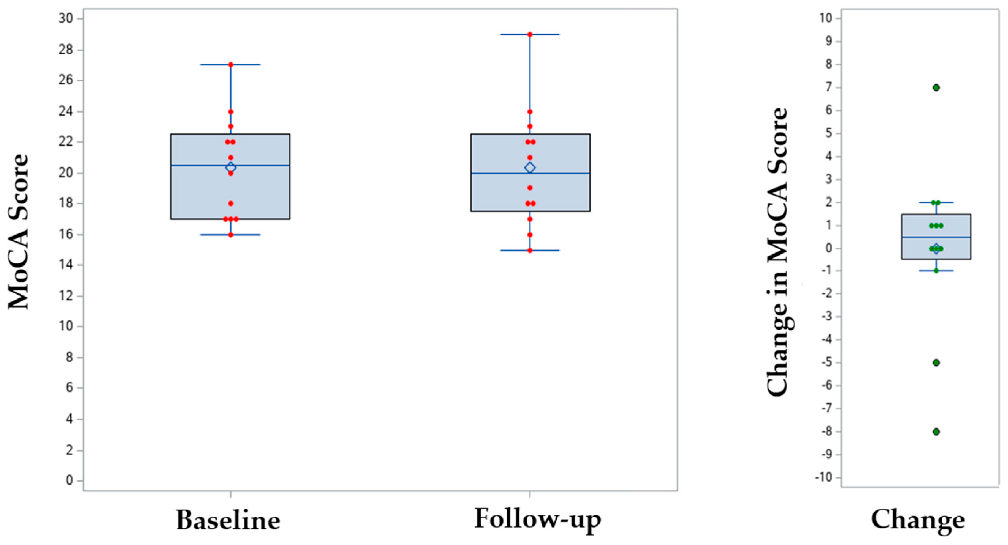 Only 12 patients (38%) had a documented MoCA following lecanemab initiation, and the mean change in MoCA score compared to baseline was 0.0 (SD 3.7,