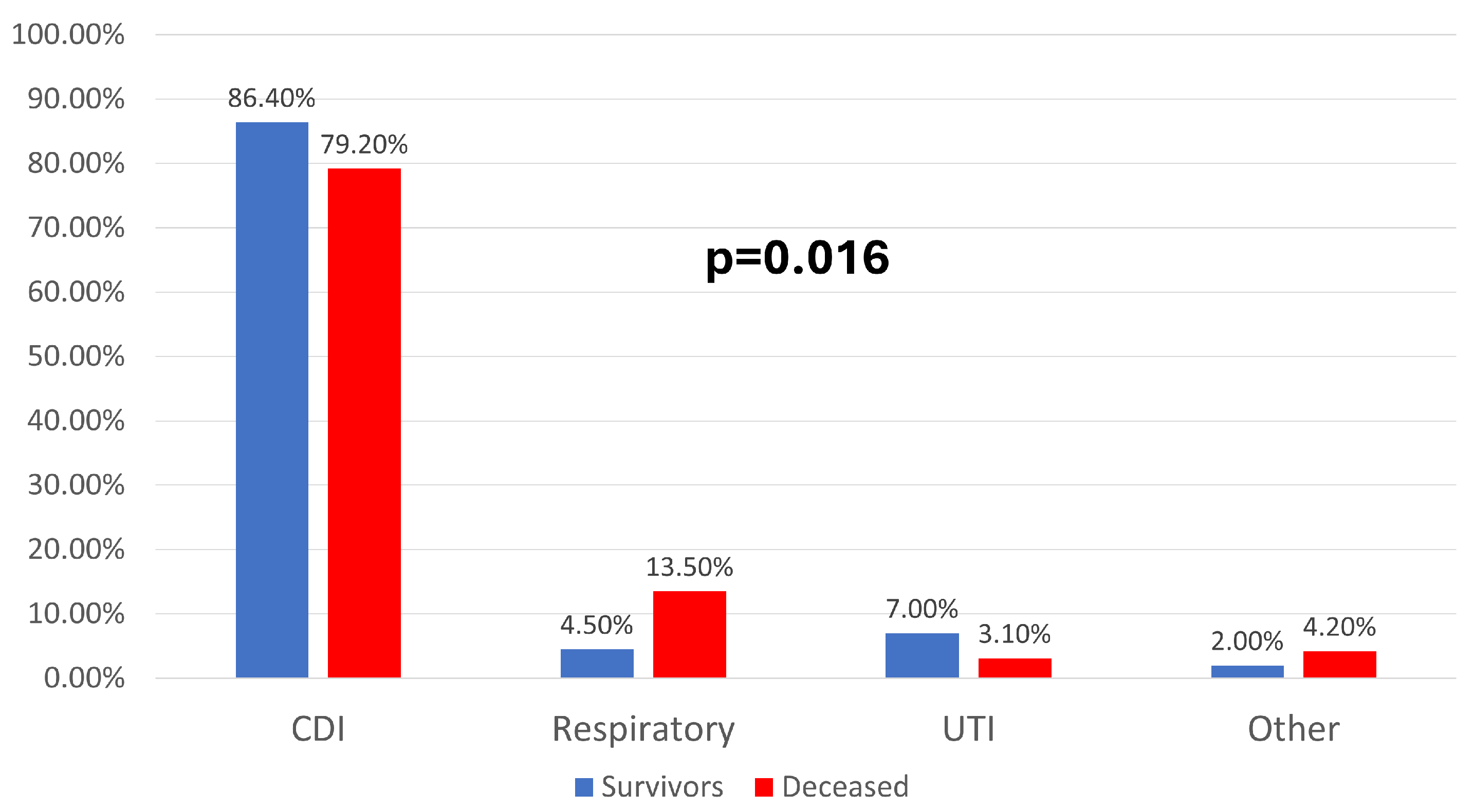 | CDI | 248 (84.1%) | 172 (86.4%) | 76 (79.2%) | 0.016 * |