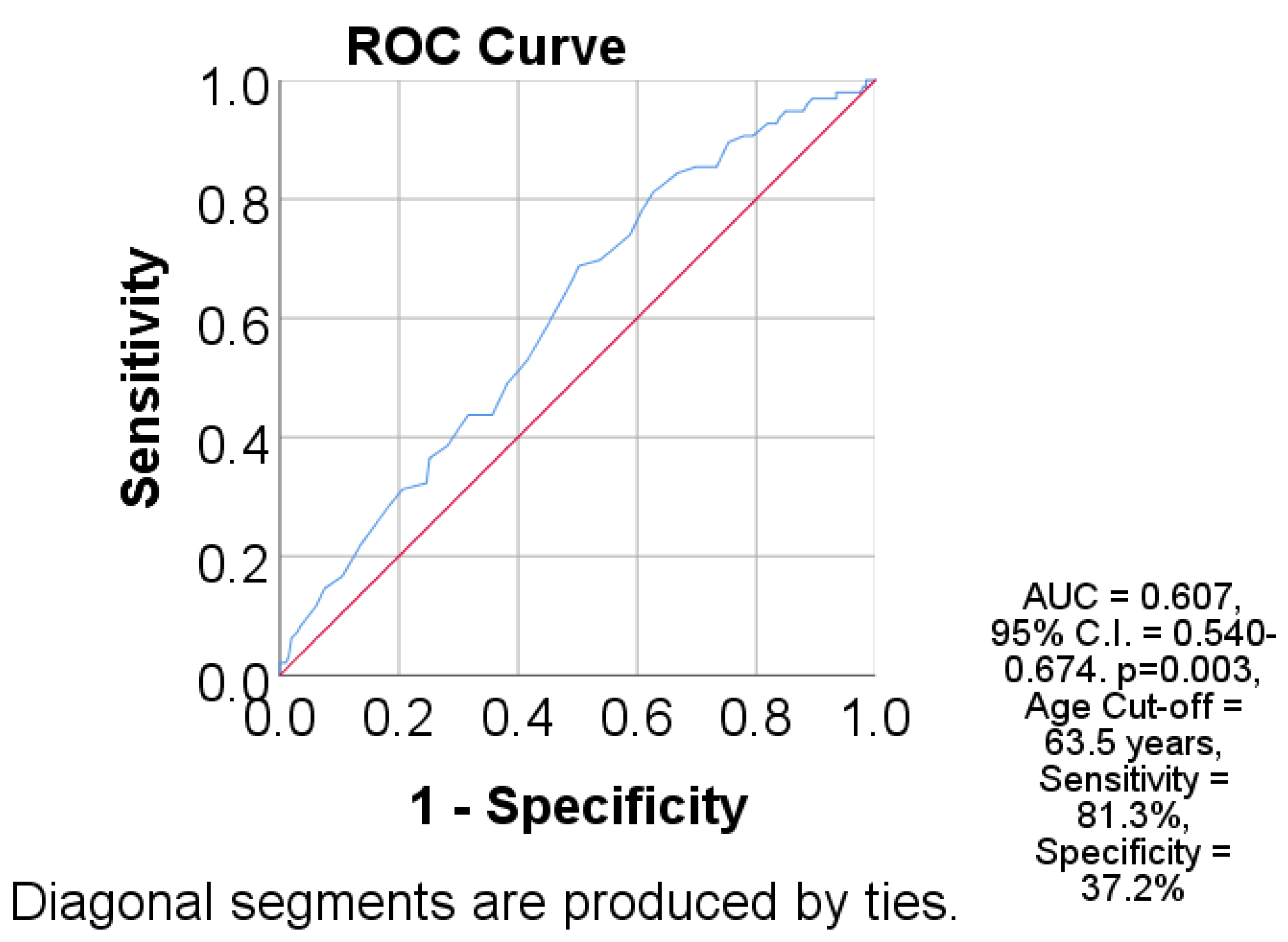 | Age | 0.607 (0.540–0.674) | 0.034 | 0.003 | 63.5 | 81.3 | 37.2 |