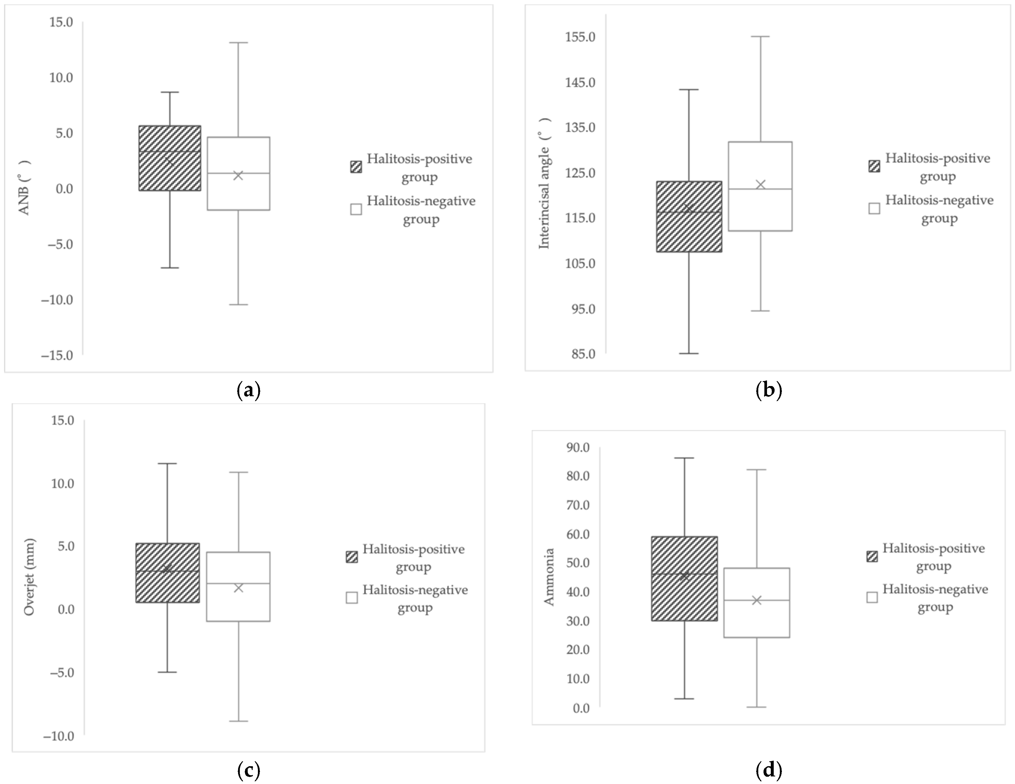 APA StyleKikuchi, K., Shimpo, Y., Sekiya, T., Shiina, N., Kiwada, M., Inaba, S., Nomura, Y., & Tomonari, H. (2025). Associations Between Halitosis and Craniofacial Morphology, Salivary Biochemical Parameters, and Mouth Breathing in Adult Patients with Malocclusion: A Cross-Sectional Study. Journal of Clinical Medicine, 14(23), 8293. https://doi.org/10.3390/jcm14238293