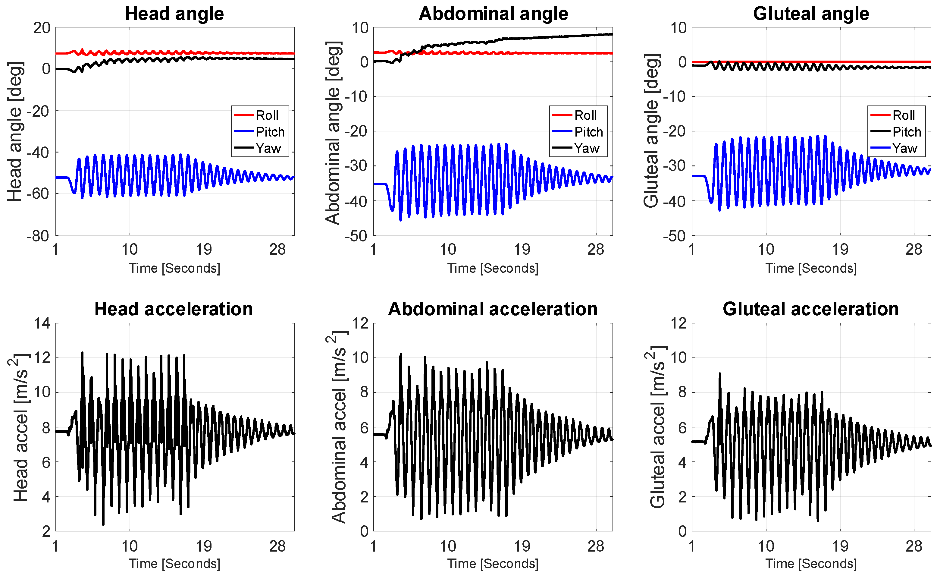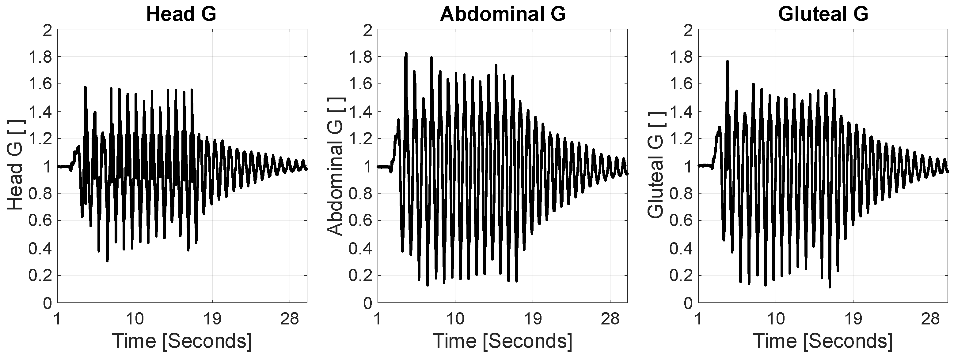 - The abdomen acts as a damping transition zone, while the gluteal region remains almost static, serving as the mechanical input.