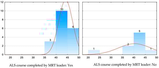 Table 6 and Figure 6 present the relationship between the MRT leader having completed an ALS course and the number of points obtained.
